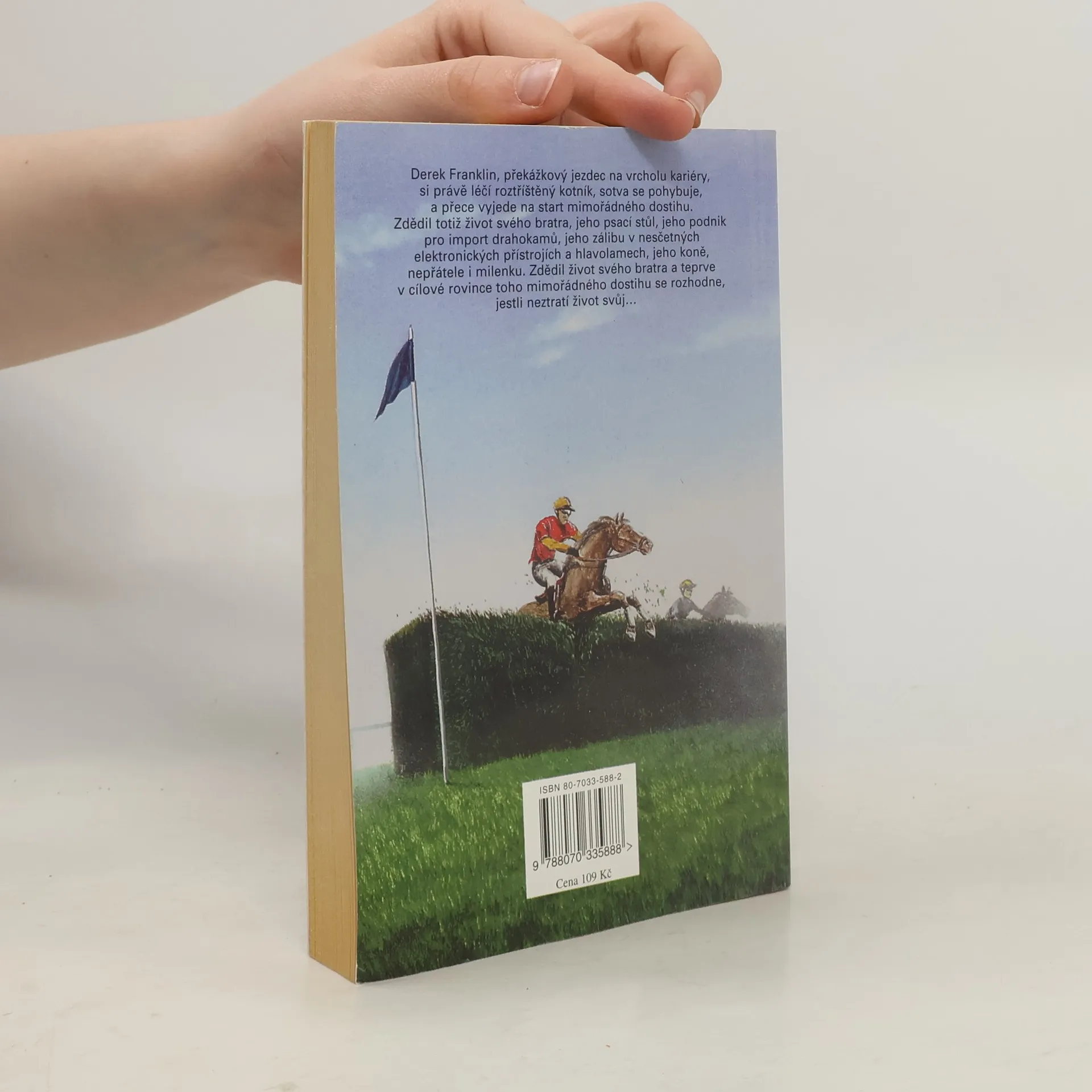 Překážkový jezdec na vrcholu kariéry Derek Franklin si právě léčí roztříštěný kotník, když se dozví, že jeho o devatenáct let starší bratr Greville umírá po těžkém úrazu. Vypraví se za ním do nemocnice, aby s ním strávil jeho poslední chvíle, a netuší, co všechno ho v nejbližší době čeká. Zdědí totiž život svého bratra, jeho psací stůl, jeho podnik pro import drahokamů, jeho zálibu v nesčetných přístrojích a hlavolamech, jeho milenku, koně, ale také jeho nepřátele, kteří ho málem o Grevillův podnik připraví. Teprve v cílové rovince tohoto mimořádného dostihu se rozhodne, jestli neztratí svůj život a zda sám obstojí se ctí.