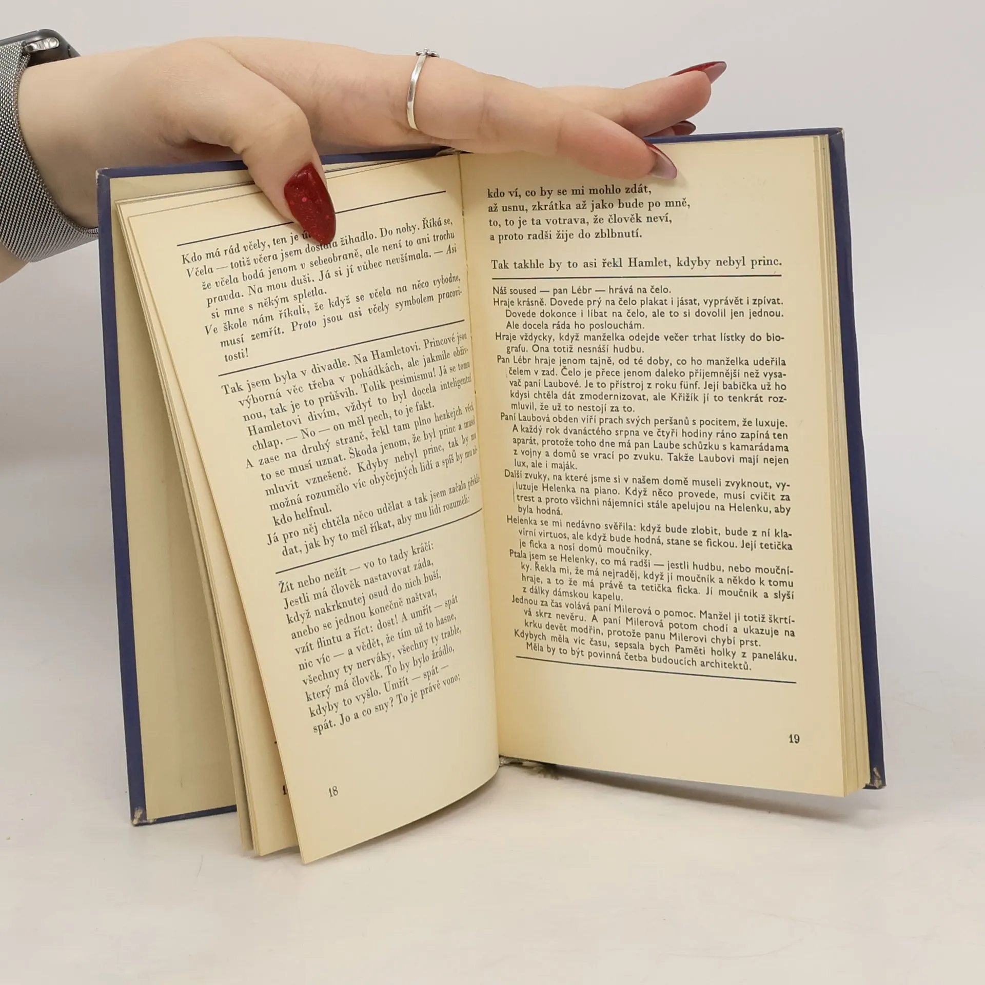První sbírka povídek Jiřího Suchého z roku 1966 obsahuje 17 povídek a povídkový doslov. Kniha je ilustrovaná autorem. Povídky: Příběh s revizorem Na naší zahrádce stával trpaslík Z deníku praktické dívky Zuzany Proč mají v zoologické zahradě klokana Červ a mravenec Bohuželva Velikonoce Kamila Morávka Atrakce Svatební dary Cecila Ideální člověk Houslové dítě Názor Nejsmutnější vánoce Pozor na úl! Nepokradeš Střela Doslov