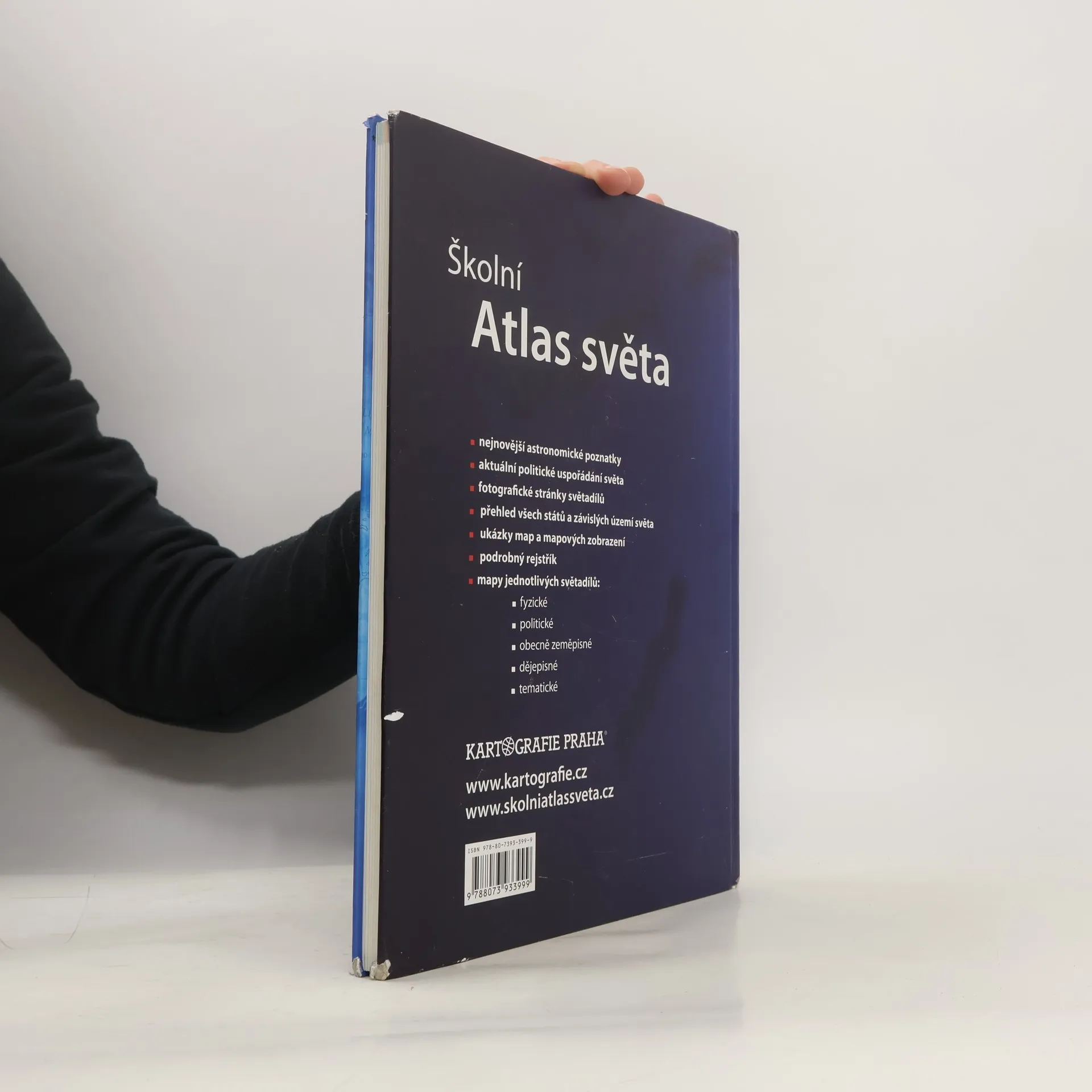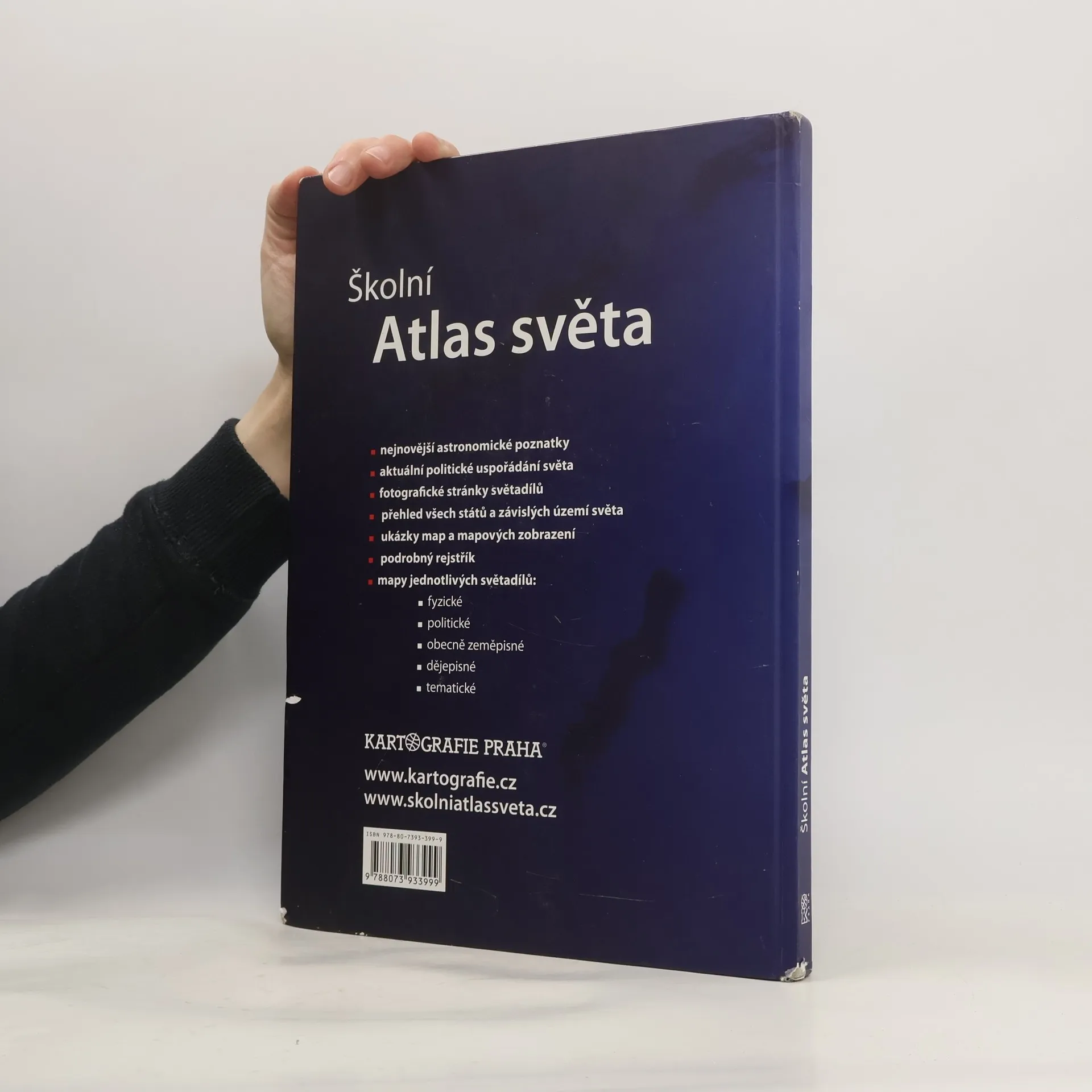 Nejprodávanější český školní atlas je univerzální pomůckou pro výuku zeměpisu na všech stupních škol. Atlas je rozdělen do tematických kapitol s barevným odlišením, což usnadňuje orientaci v mapách. Úvodní část obsahuje nejnovější astronomické poznatky o vesmíru a Sluneční soustavě. Následuje kapitola Svět s tematickými mapami zaměřenými na přírodu, obyvatelstvo, hospodářství a prostředí, v němž lidé žijí. Části věnované jednotlivým světadílům zahrnují podrobné obecně zeměpisné mapy s doplňujícími tematickými mapami a historickými mapami klíčových etap vývoje kontinentů, což umožňuje mezipředmětovou výuku. Mapovou část každého světadílu uvádějí fotografické stránky s charakterizujícím textem a tabulkou geografických údajů. Atlas obsahuje přehlednou tabulku všech států a závislých území světa, tabulky zeměpisných rekordů a rejstřík s více než 15 000 názvy. Čtvrté vydání navazuje na úspěšná vydání z let 2004, 2007 a 2011. Mezi novinky patří témata jako zaměstnanost žen, vzdělání, zdravotnictví a kvalita života, nové téma Ohniska napětí ve světě, fyzická a administrativní mapa Česka, podrobná mapa severní Asie a vylepšený znakový klíč obecně zeměpisných map pro lepší čitelnost.