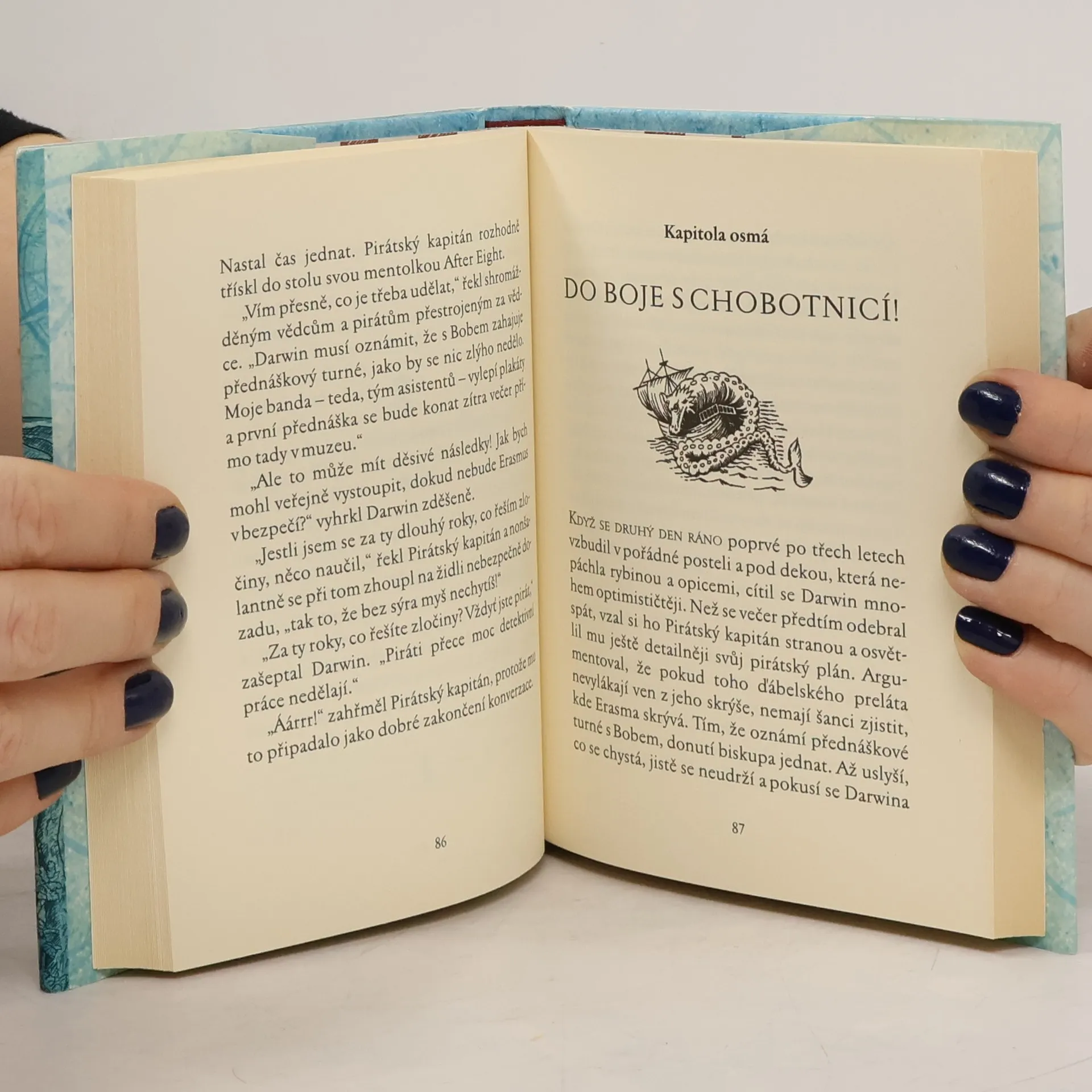 Nelítostně vtipný román o krutě komických dobrodružstvích bodrého Pirátského kapitána a jeho střelené posádky, tentokrát mezi vědci. Ještě nikdy od dob, kdy byl napsán Moby Dick... Ne, ještě nikdy od Ostrova pokladů... Ne, dokonce ještě nikdy od příběhu o Jonášovi a velrybě nevznikla žádná námořní sága, která by se vyrovnala knize Piráti! Dobrodružství s vědátory. Hlavním hrdinou eposu je nejúžasnější mořeplavec všech dob, nezapomenutelný Pirátský kapitán, který má podivuhodnou schopnost udržet si svůj plnovous vždy hedvábně jemný a skvěle upravený i přesto, že tráví celé měsíce na moři. Hnán obavami, že jeho pirátskou posádku už začíná nudit lelkování na pláži, pomrkávání po krásných divoškách a marné pokusy postavit si skákací hrad z medúz, rozhodne se Pirátský kapitán, že je nejvyšší čas vyrazit na dobrodružnou výpravu. V mylné vidině ohromné zlaté kořisti napadne loď Beagle s mladým Charlesem Darwinem na palubě a spolu s ním pak vede svou lotrovskou posádku z exotických Galapág do mlhou zahalených ulic viktoriánského Londýna. Tam se piráti setkají s děsivými vraždami, mizejícími dívkami, radioaktivními slony i samotným svatým Duchem. A to není ani zdaleka vše…