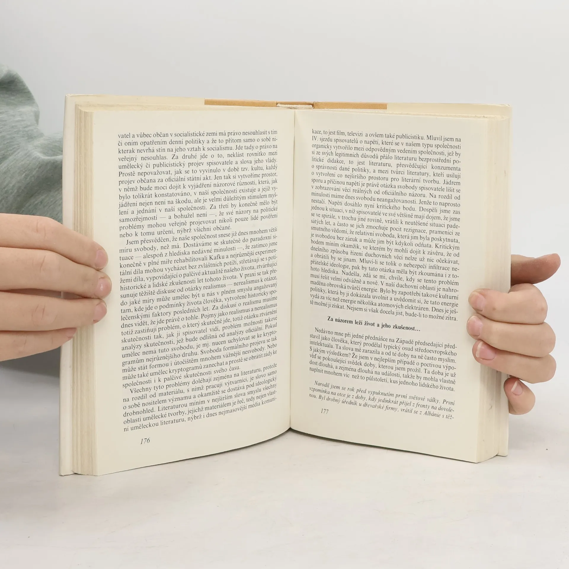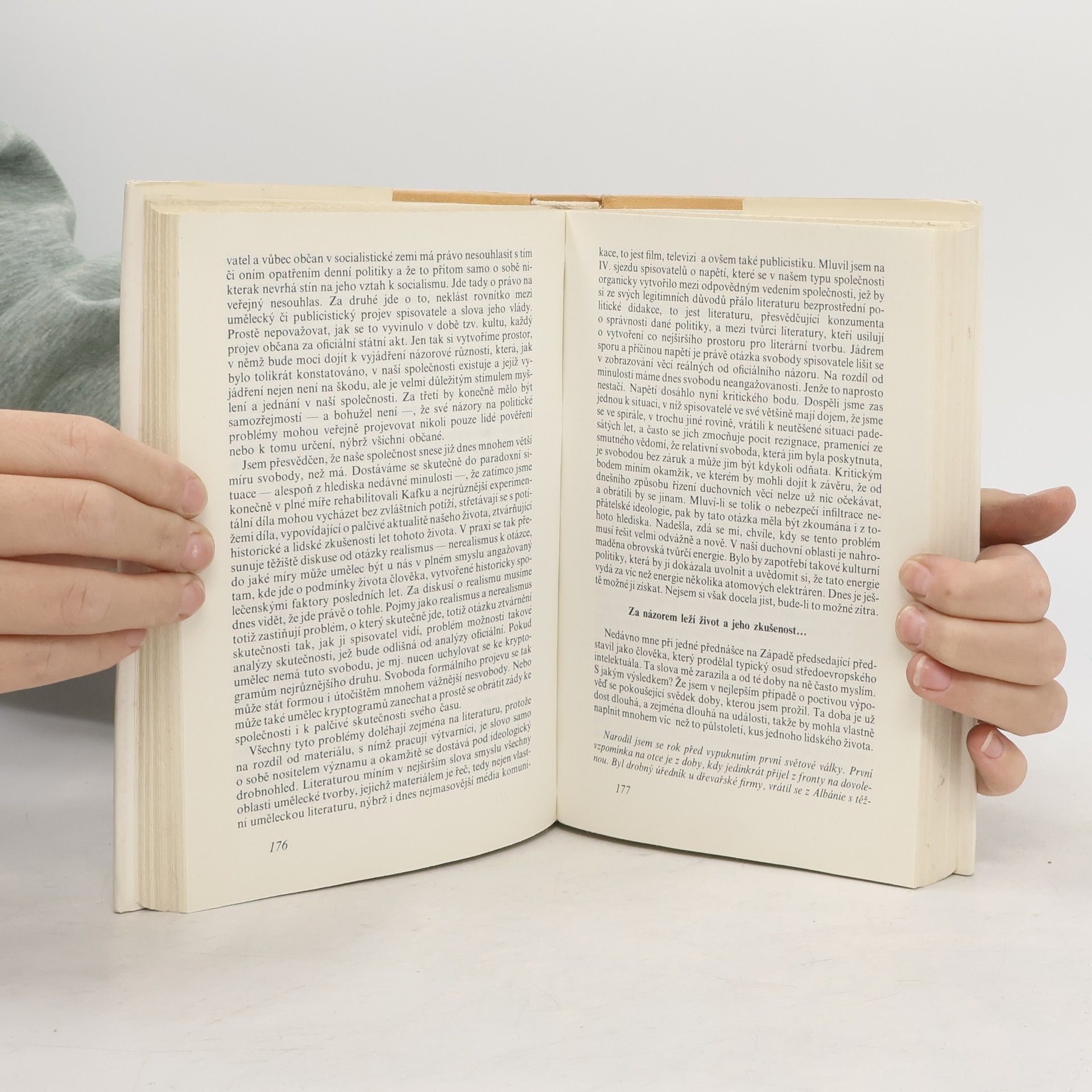 Rozhovory z let 1966–1968 s L. Novomeským, E. Krumbachovou, M. Kunderou, J. Škvoreckým, L. Vaculíkem, J. Muchou, J. Putíkem, D. Tatarkou, E. Goldstückerem, A. Bednárem, L. Čivrným, J. Skácelem, P. Karvašem, I. Klímou, V. Havlem, doplněné předmluvou J. P. Sartra k francouzskému vyd. (1970) a rozhovory s E. Hostovským (1973) a J. Voskovcem (1981).