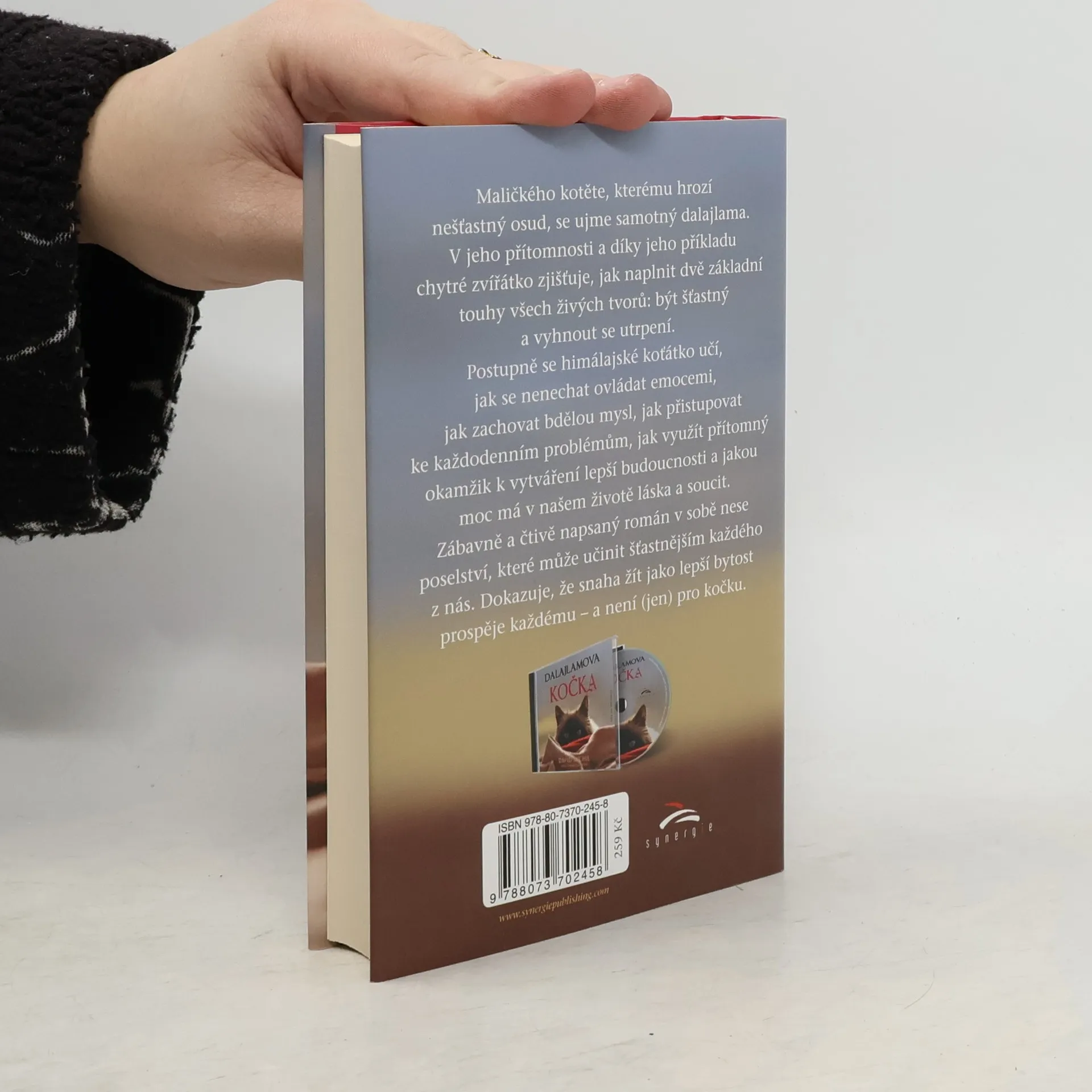Maličkého kotěte, kterému hrozí nešťastný osud, se ujme samotný dalajlama. Kočička líčí svůj každodenní život v jeho těsné blízkosti. Stává se svědkem rozhovorů mezi dalajlamou a jeho hosty. Postupně poznává, v čem spočívá štěstí, a jak ho na cestě životem najít, což není pro žádnou živou bytost snadné. V laskavém příběhu často nechybějí humorné situace, kočka se tře o nohy hollywoodských hvězd a dělí se s námi o poznání, které získává v klášteře buddhistických mnichů. „Chci, aby i díky této knize lidé dospěli k tomu, že nejdůležitější je láska v různých podobách. Šťastní jste, když se staráte o druhé a dáváte jim lásku. To je jedna z nejúčinnějších cest ke štěstí,“ říká o Dalajlámově kočce její autor David Michie.