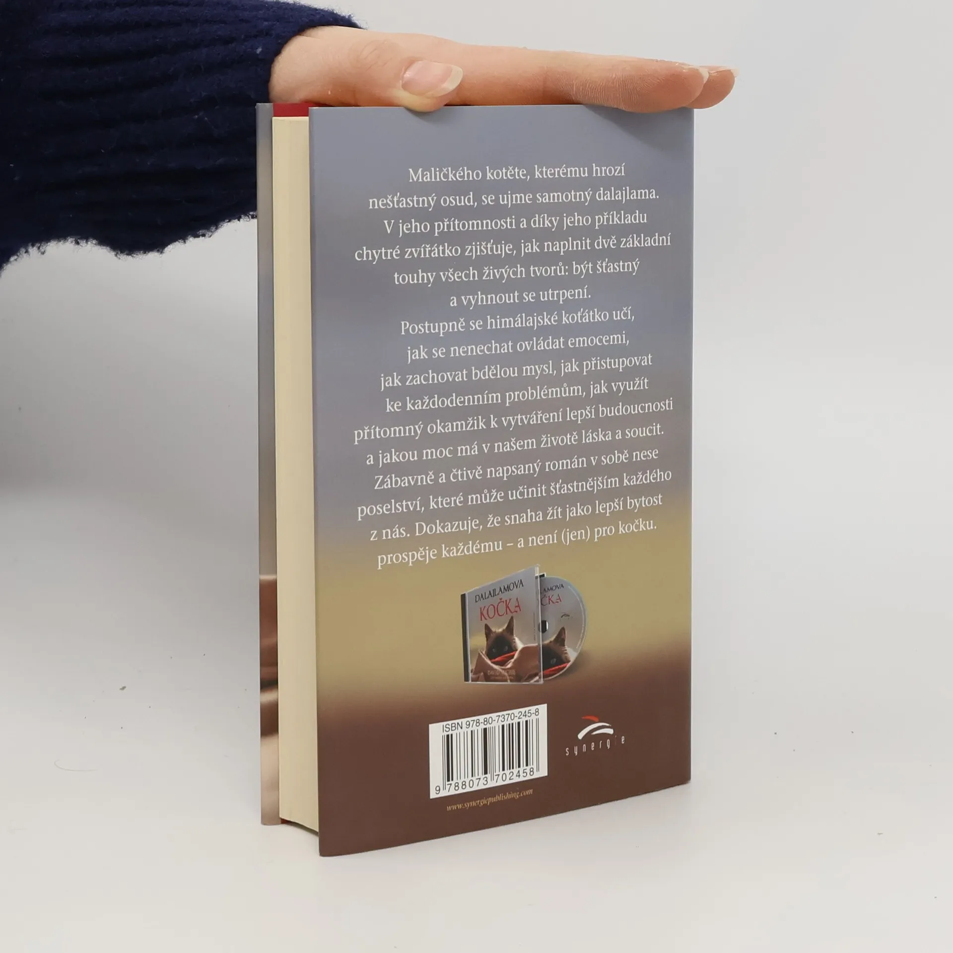 Maličkého kotěte, kterému hrozí nešťastný osud, se ujme samotný dalajlama. Kočička líčí svůj každodenní život v jeho těsné blízkosti. Stává se svědkem rozhovorů mezi dalajlamou a jeho hosty. Postupně poznává, v čem spočívá štěstí, a jak ho na cestě životem najít, což není pro žádnou živou bytost snadné. V laskavém příběhu často nechybějí humorné situace, kočka se tře o nohy hollywoodských hvězd a dělí se s námi o poznání, které získává v klášteře buddhistických mnichů. „Chci, aby i díky této knize lidé dospěli k tomu, že nejdůležitější je láska v různých podobách. Šťastní jste, když se staráte o druhé a dáváte jim lásku. To je jedna z nejúčinnějších cest ke štěstí,“ říká o Dalajlámově kočce její autor David Michie.