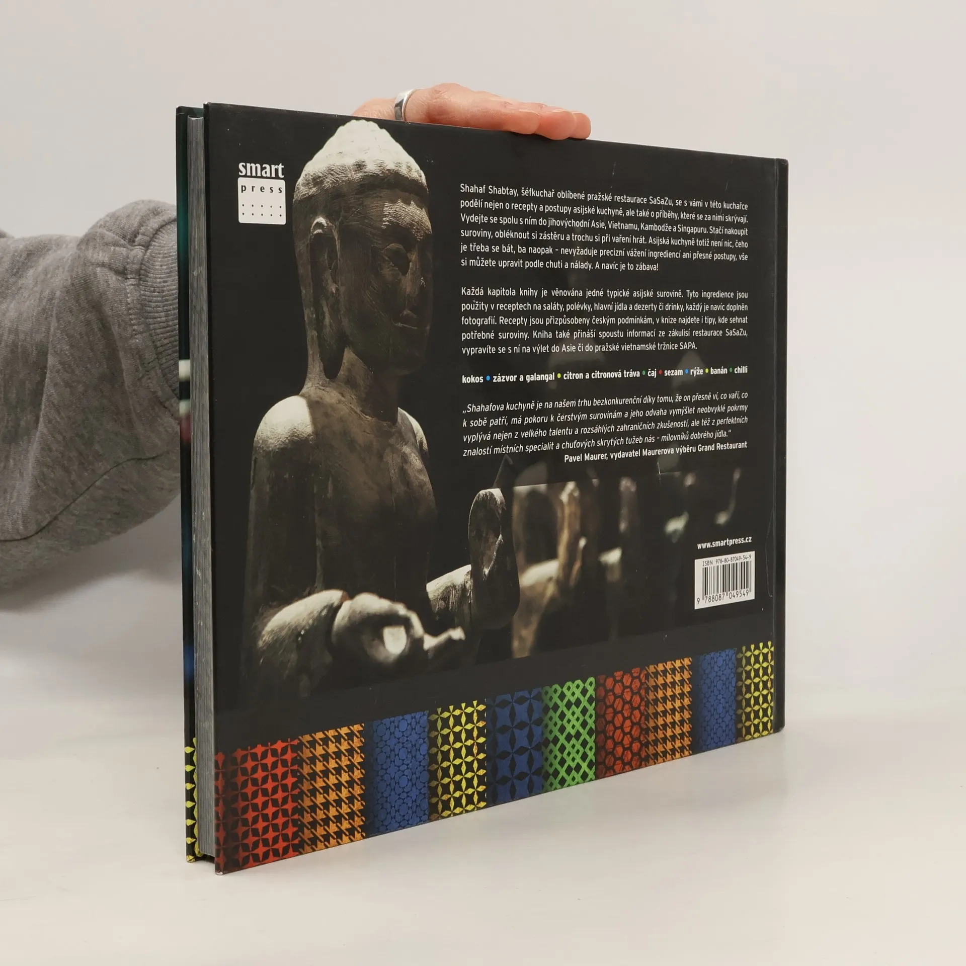 Shahaf Shabtay, šéfkuchař pražské restaurace SaSaZu, strávil roky objevováním asijské kuchyně. Ve spolupráci s nakladatelstvím Smart Press se v knize podělil o recepty a příběhy plné vášně a dobrodružství, které se za nimi skrývají. Jídla, která představuje, jsou známá z menu SaSaZu a některá i z jihovýchodní Asie, jako jsou Vietnam, Kambodža a Singapur. Asijská kuchyně je přístupná a nevyžaduje precizní vážení, můžete si ji upravit podle chuti. Recepty jsou přizpůsobeny českým podmínkám a všechny suroviny jsou snadno dostupné, včetně tipů na nákup. Kniha je rozdělena do osmi kapitol, každá se zaměřuje na jednu typickou asijskou surovinu: kokos, zázvor, citron, čaj, sezam, rýži, banán a chilli. Tyto ingredience jsou použity v receptech na saláty, polévky, hlavní jídla, dezerty a nápoje, včetně dalších tipů na využití, jako je kokosový krém na ruce. Každý recept je doplněn fotografií. Kniha také nabízí pohled do zákulisí restaurace, výlet do Asie a návštěvu pražské vietnamské tržnice SAPA, přičemž představuje i ty, kteří pomohli vytvořit koncept SaSaZu.