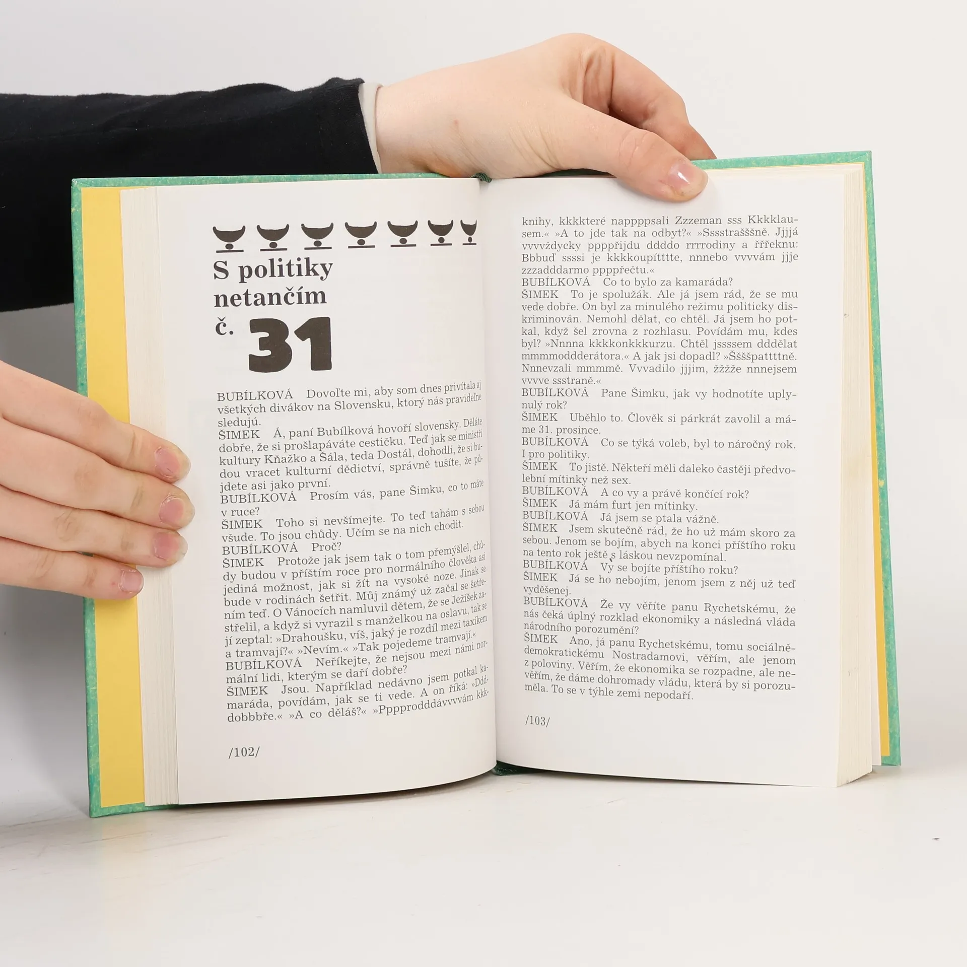 Třetí svazek kabaretních výstupů a skečů z televizního pořadu S politiky netančím, tentokrát pod názvem Politická záchytka aneb S politiky do němoty. Zuzana Bubílková a Miloslav Šimek knižně prezentují dialogy, které spolu vedou na téma věčné a vděčné: politika a její provozovatelé. Knihovna Jiřího Grossmanna se tak rozrůstá o další, v pořadí sedmý svazek.