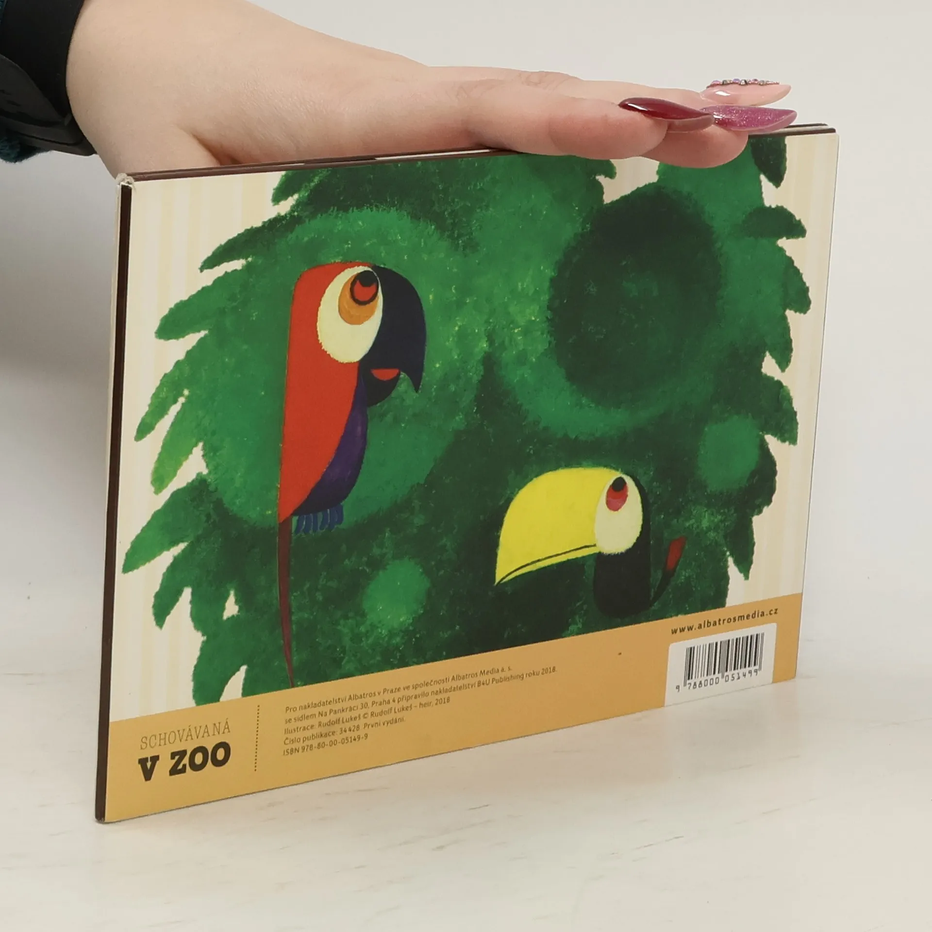 Některé věci vypadají přesně naopak, než ve skutečnosti jsou. Pravda se ukrývá pod jejich povrchem. Tak jako v zábavné knížce o zvířátkách, kterou právě držíš v rukách. Tahá pštros osla za ocas? Nebo je to všechno jinak? Překrásné ilustrace Rudolfa Lukeše, originální formát, jednoduchý text pro nejmenší čtenáře a veselá rozuzlení, taková je Schovávaná v zoo. Pobaví i potěší, stačí otevřít knihu a pustit se do hry.