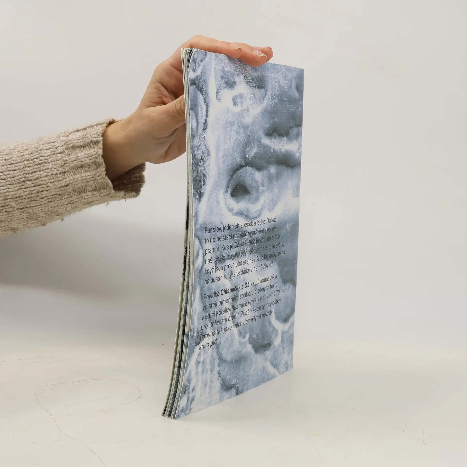 Pár slov, jeden chlapeček a jedna Dálka: to úplně stačí na malé vyprávění s velkým ptaním. Kde je Dálka? Proč je sníh na střeše naší chaloupky milejší než ten na střeše světa, když jsou přece oba stejné? A co by, nebýt okna na dosah ruky, z té dálky vlastně zbylo? Povídka Chlapeček a Dálka původně vyšla ve stejnojmenném souboru drobných textů v edici Korálky. Ilustrace vznikly v polovině 70. let pro „televizní čtení“. Příběh se za ty roky dětem (zrovna tak jako jejich dospělým) nevzdálil ani o píď.