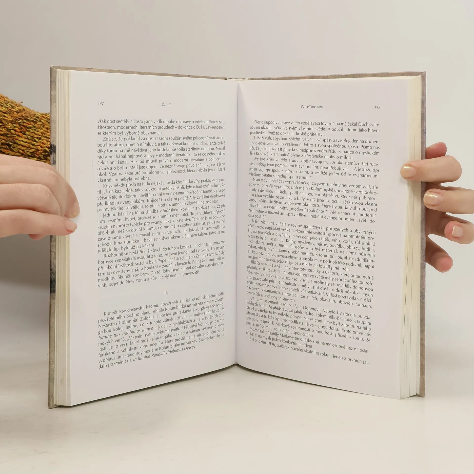 Poutavá autobiografie umožňuje čtenáři spolu s autorem projít a s tvrdostí pocítit stupňovitou cestu od dantovského „pekla“ rodinných tragédií dětství, zmatků osamělého rebela a bohémských let na univerzitě, přes toulky předválečnou Evropou s jejími inspirujícími místy a osobnostmi, až po vrcholné hledání duše, neuspokojené žádným dočasným pokladem. Malířský synek, vzdorující intelektuál, básník a milovník rozkoší života po lítém vnitřním boji nakonec zaklepe na bránu trapistického kláštera, aby v něm – k úžasu všech svých bouřliváckých přátel a k inspiraci mnoha budoucích bratří – až do smrti setrval v tichu.