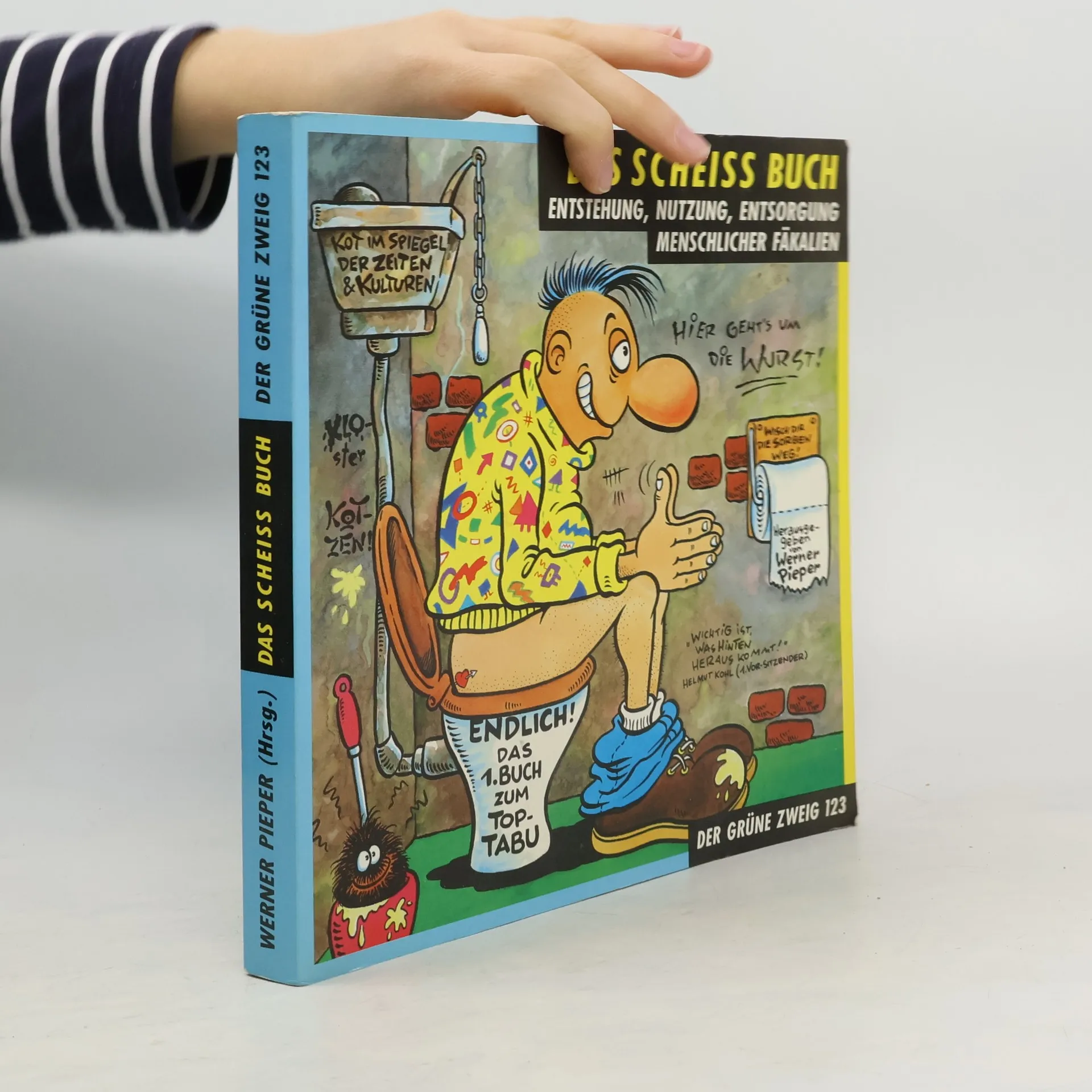 Einer unserer Verlagsrenner und der Klassiker der neuen Jonglier-Szene. Verbringen wir nicht auch alle einen guten Teil unseres Lebens auf der Toilette? Dieses Buch lässt uns eine ganz neue Sichtweise auf das tägliche „Geschäft“ gewinnen, und die Verdauungsvorgänge in unserem Körper besser verstehen. Dabei ist es amüsant geschrieben und kann auch eine für jeden unterhaltsame und lehrreiche Klolektüre sein. Was wissen wir schon von unserer alltäglichen Scheiße? Wie stellen wir sie her, wie werden wir sie los? Wie gingen und gehen Menschen verschiedener Kultur mit diesem, unserem ›ersten Produkt‹ (Freud) um? Wie wird sie in Medizin & Kultur genutzt, wie wird sie entsorgt? Es gibt Tausende von Kochbüchern, aber keines darüber, was mit unserer Ernährung geschieht, wenn sie erst einmal gegessen ist. - In diesem reichhaltig illustriertem Buch werden sie mehr Antworten finden, als Sie Fragen stellen könnten. Echt Scheiße. Ist eben kein Scheißbuch das Scheiss-Buch. Dieser Titel ist der Grüne Zweig NR 123 aus Werner Pieper s Medien-Experimenten The Grüne Kraft.