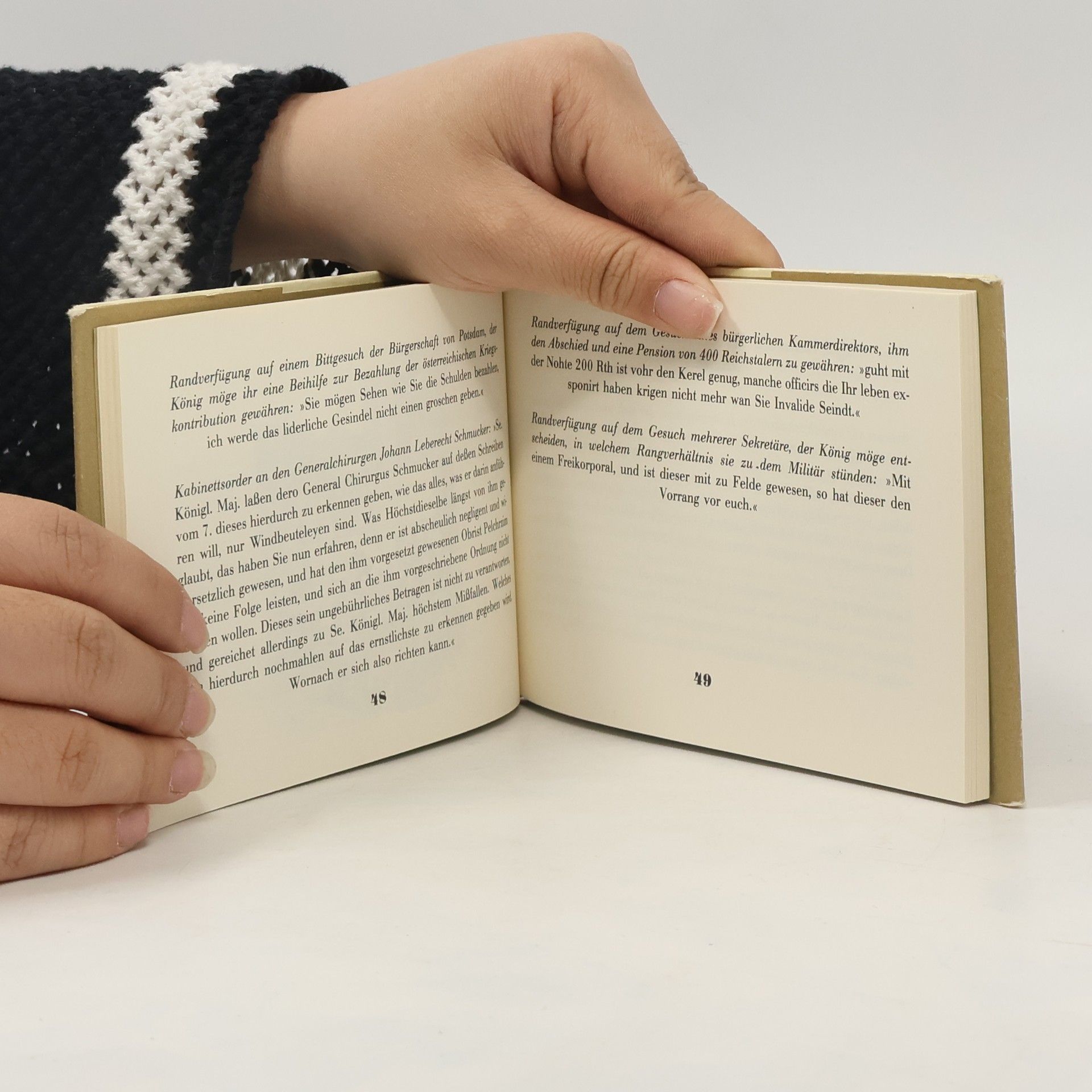 Friedrich II. war eine Ausnahme unter den Königen seiner Zeit. Wo fand man einen Monarchen, der wie ein Eremit lebte? Der aufstand, wenn andere Herrscher zu Bett gingen? Der sein Vergnügen nicht im Ballsaal oder am Spieltisch, sondern in der Unterhaltung und in der Erfüllung seiner Pflichten sah? Es gehörte auch zu den Eigenheiten des friderizianischen Regierungsstils, daß alles über seinen Schreibtisch ging - das Wichtige wie das Unwichtige, das Ernste wie das Lächerliche. Die Verfügungen, die Friedrich an den Rand der Akten kritzelte, die Kabinettsordern und Briefe sind eine fesselnde Lektüre. Sie zeigen einen klugen, pragmatischen Kopf, dem niemand ein X für ein U vormachte, einen Denker von sprachlicher Originalität und manchmal geistreicher Bosheit.