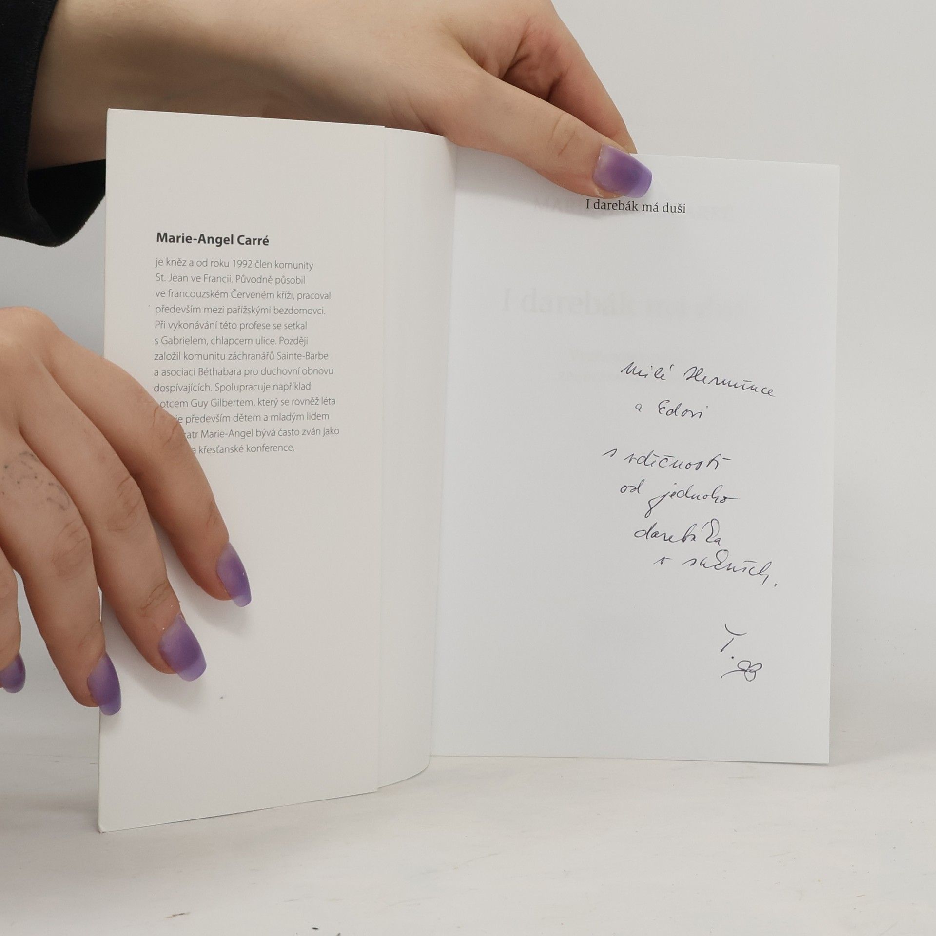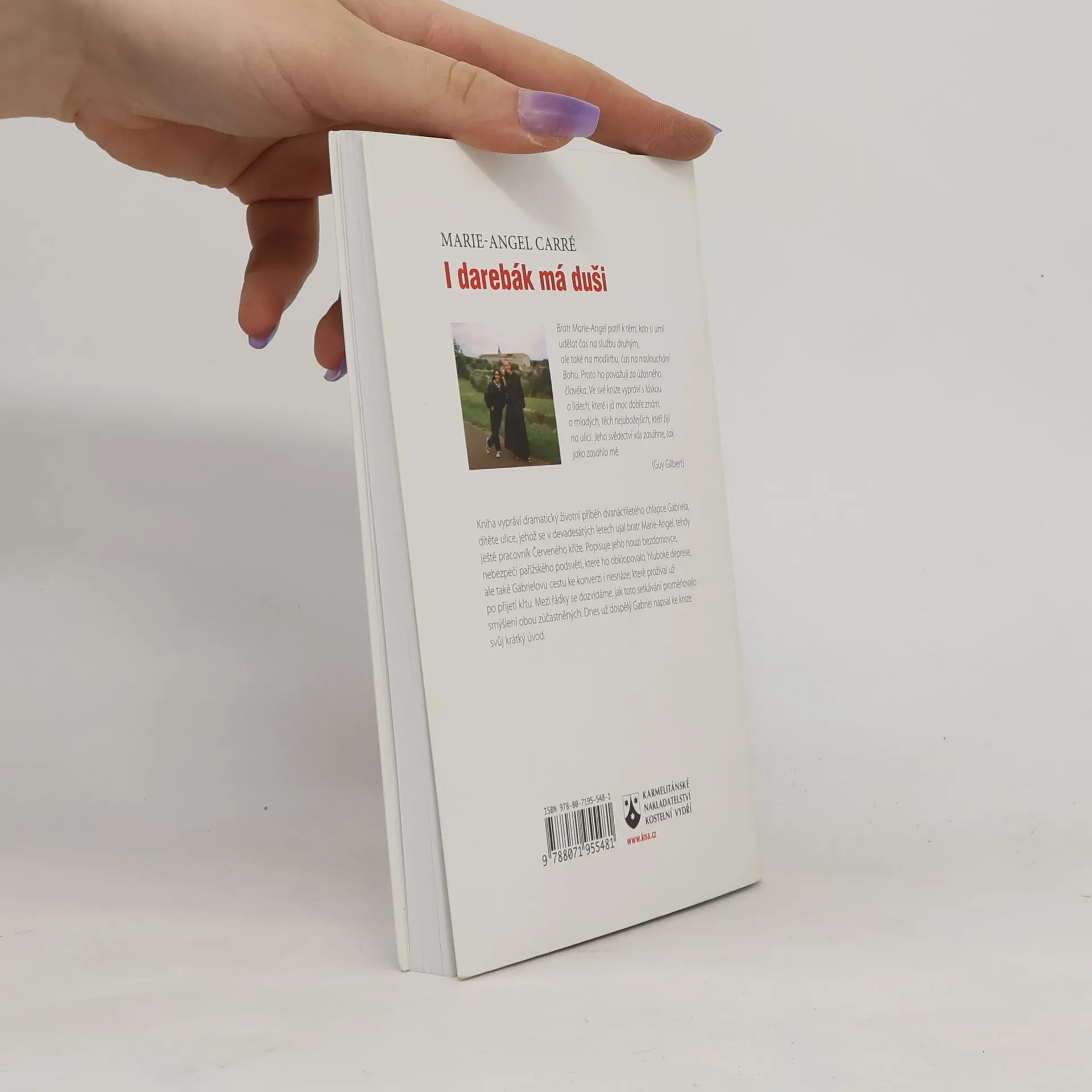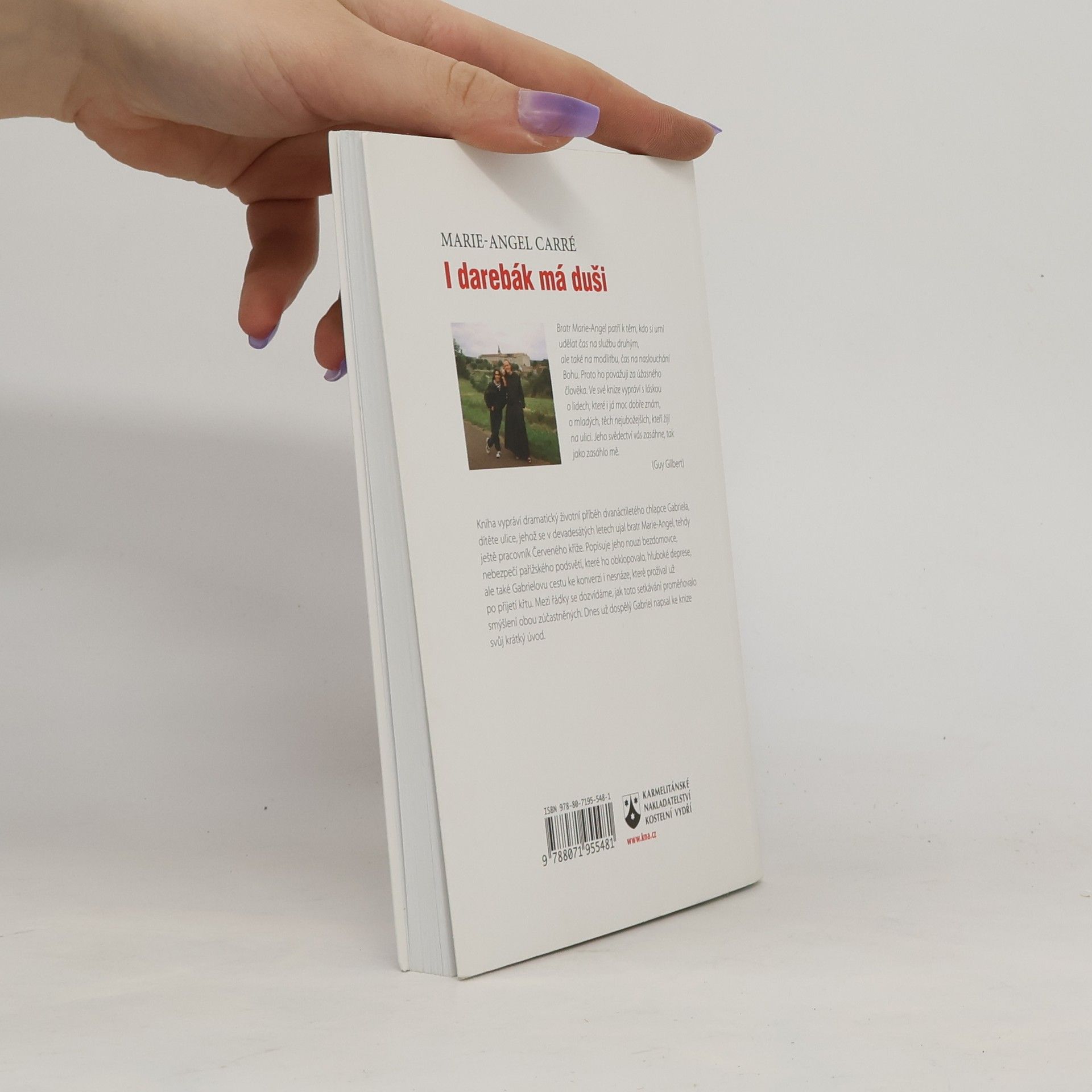 Vychovaný ulicí, zachráněný Bohem. Bratr Marie-Angel patří k těm, kdo si umí udělat čas na službu druhým, ale také na modlitbu, čas na naslouchání Bohu. Proto ho považuji za úžasného člověka. Ve své knize vypráví s láskou o lidech, které i já moc dobře znám, o mladých, těch nejubožejších, kteří žijí na ulici. Jeho svědectví vás zasáhne, tak jako zasáhlo mě. (Guy Gilbert) Kniha vypráví dramatický životní příběh dvanáctiletého chlapce Gabriela, dítěte ulice, jehož se v devadesátých letech ujal bratr Marie-Angel, tehdy ještě pracovník Červeného kříže. Popisuje jeho nouzi bezdomovce, nebezpečí pařížského podsvětí, které ho obklopovalo, hluboké deprese, ale také Gabrielovu cestu ke konverzi i nesnáze, které prožíval už po přijetí křtu. Mezi řádky se dozvídáme, jak toto setkávání proměňovalo smýšlení obou zúčastněných. Dnes už dospělý Gabriel napsal ke knize svůj krátký úvod.
