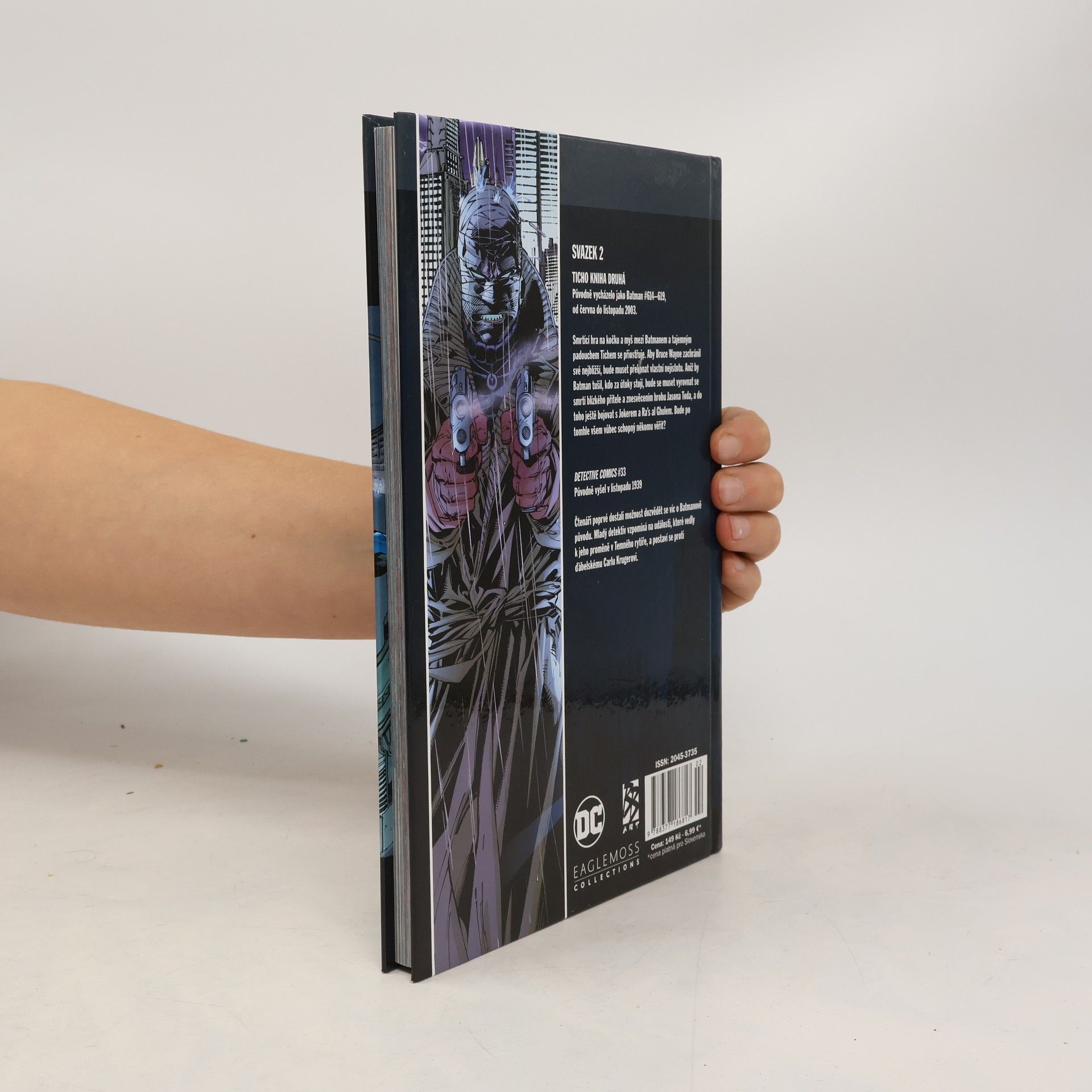 V druhém díle komiksu Batman: Ticho se Temný rytíř utkává se spoustou známých padouchů, včetně Scarecrowa, Ra's al Ghula, Two-Face, Riddlera... a dokonce i samotného Jokera. A postupně se Batman dostává blíž a blíž k tajemnému muži v obvazech, který se všemi manipuluje. Jenže dostat se k němu blízko a porazit ho, to jsou dvě zcela odlišné věci.