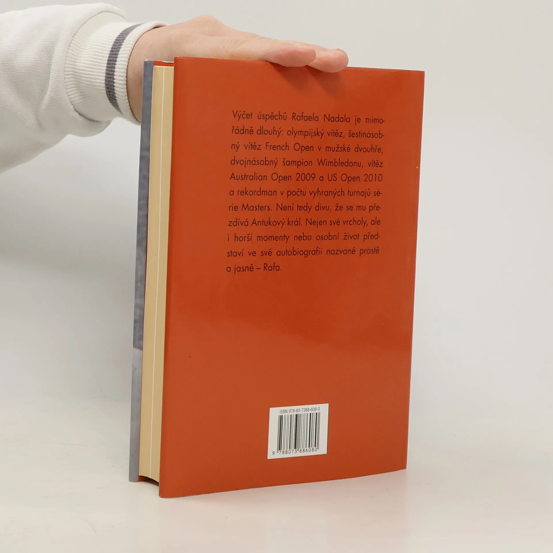 Výčet úspěchů Rafaela Nadala je mimořádně dlouhý: olympijský vítěz, šestinásobný vítěz French Open v mužské dvouhře, dvojnásobný šampión Wimbledonu, vítěz Australian Open 2009 a US Open 2010 a rekordman v počtu vyhraných turnajů série Masters. Není tedy divu, že se mu přezdívá Antukový král. Nejen své vrcholy, ale i horší momenty nebo osobní život představí ve své autobiografii nazvané prostě a jasně – Rafa.