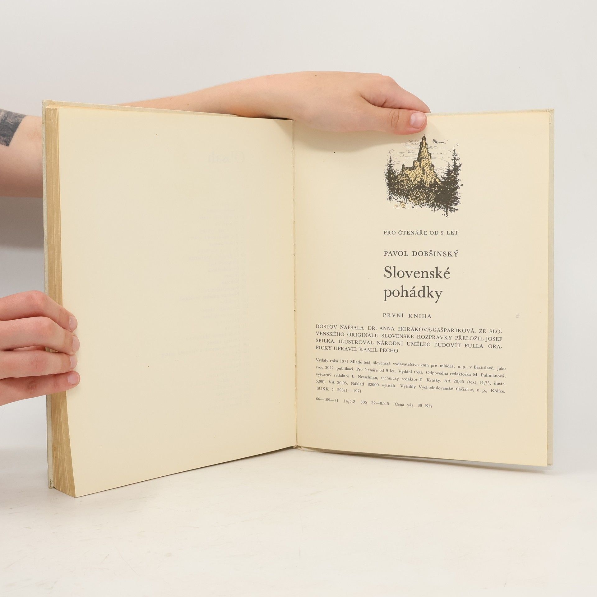 první kniha ze sbírky Pavla Dobšinského, il. Národní umělec L´udovít Fulla, OBSAH: Dlouhý nos, Dobrý střelec, O větrném králi, Popeláček, Tři zlaté hrušky, Tři zhavranělí bratři, Pyšná panna, Radúz a Ludmila, Šurienaka a Atalienka, Sluncový kůň, Černokněžník, Jelínek, Nebojsa,Světovládný rytíř, Pozdrav pánbu, lavičko!,, Trojrůže, Ztracený chlapec, Divotvorný lovec, Tři stromy, Berona, Zlatá panna Mahulena, Zakletý zámek, Dvanáct bratrů a třináctá sestra, Čert slouží, Železník, Sůl nad zlato, Zlatá přadlena, O dvanácti měsíčkách, Tři holoubic, Zaltovláska, Prorok Rak, Dřevěná kráva.