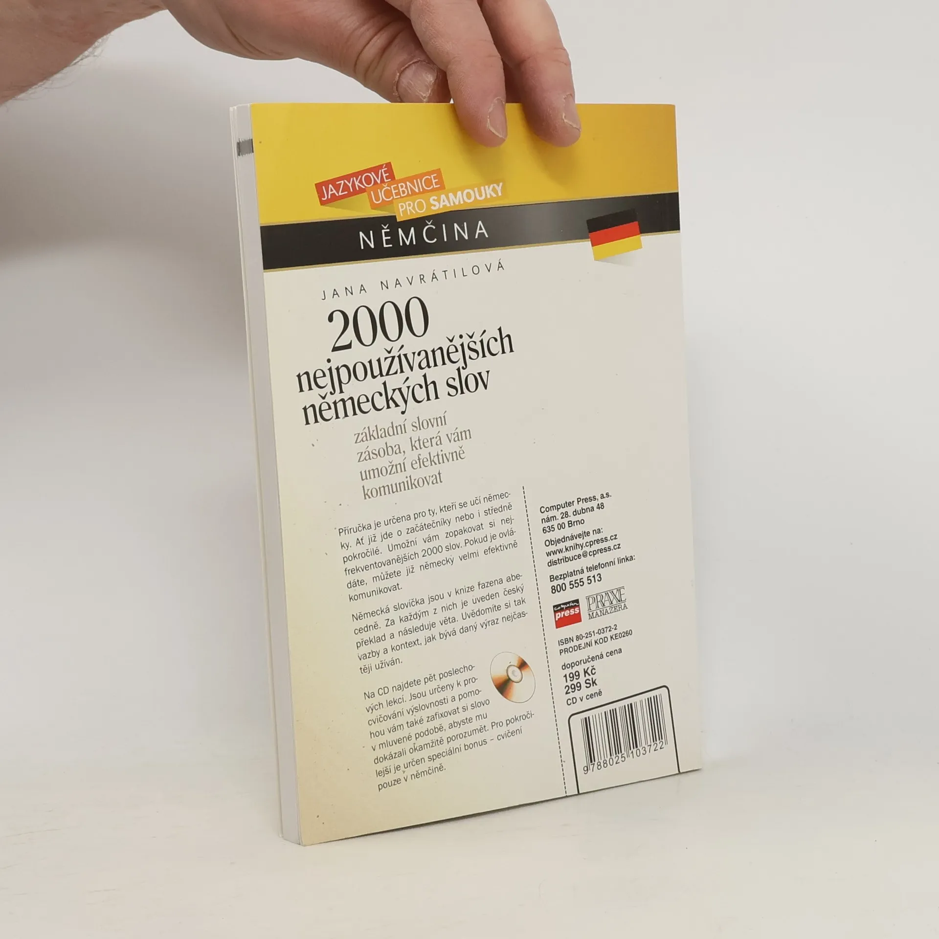 Příručka je určena pro ty, kteří se učí německy. Ať již jde o začátečníky nebo i středně pokročilé. Umožní vám zopakovat si nejfrekventovanějších 2000 slov. Pokud je ovládáte, můžete již německy velmi efektivně komunikovat. Německá slovíčka jsou v knize řazena abecedně. Za každým z nich je uveden český překlad a následuje věta. Uvědomíte si tak vazby a kontext, jak bývá daný výraz nejčastěji užíván. Jsou určeny k procvičování výslovnosti a pomohou vám také zafixovat si slovo v mluvené podobě, abyste mu dokázali okamžitě porozumět. Pro pokročilejší je určen speciální bonus - cvičení pouze v němčině.