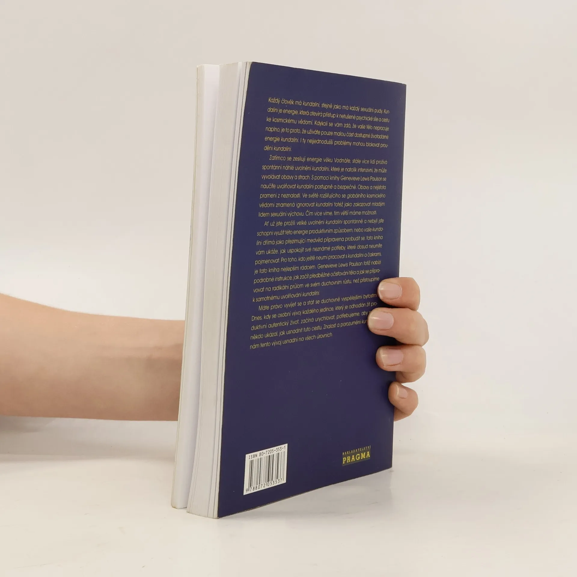 Kundalini je životodárná energie, která otevírá přístup k psychické síle a kosmickému vědomí. Kniha vás naučí, jak tuto energii uvolňovat postupně a bezpečně, a jak pracovat s dosud nepojmenovatelnými potřebami. Každý má kundalini, stejně jako sexuální pudy. Pokud cítíte, že vaše tělo nefunguje naplno, je to často kvůli nedostatečnému využívání této energie. I drobné problémy mohou blokovat její tok. V době zesilujících energií věku Vodnáře prožívá stále více lidí spontánní uvolnění kundalini, které může vyvolávat obavy. S pomocí této knihy se naučíte, jak uvolnit kundalini bezpečně a efektivně. Neznalost vyvolává strach, a ignorování kundalini je jako zakazování sexuální výchovy mladým lidem. Čím více víme, tím více možností máme. Ať už jste zažili intenzivní uvolnění kundalini nebo vaše energie dřímá, tato kniha vám ukáže, jak uspokojit neznámé potřeby. Je ideálním průvodcem pro ty, kdo chtějí pracovat s kundalini a čakrami. Autorka poskytuje podrobné instrukce pro očistu těla a přípravu na duchovní růst před samotným uvolněním kundalini. Máte právo na duchovní vývoj, a v dnešní době, kdy se osobní růst urychluje, je důležité mít někoho, kdo vám tuto cestu usnadní. Znalost kundalini vám pomůže na všech úrovních.