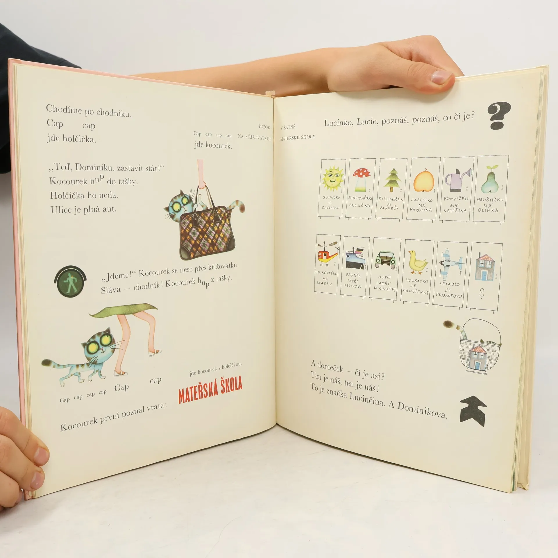 Tuhle knížku musíte mít – zvláště pokud máte doma malou Lucinku. Velká obrázková kniha pro nejmenší. Adresátem může být už dvouleté dítě, kterému předčítáte, nebo zcela začínající čtenář, který se teprve seznamuje s písmenky. Jednoduchý příběh, spíš všední vyprávěnío tom, co všechno Lucinka a její kamarád – kocourek Dominik během dne dělají, co vidí, kam chodí, kam jedou… Koho Lucinka má a kdo má rád Lucinku.