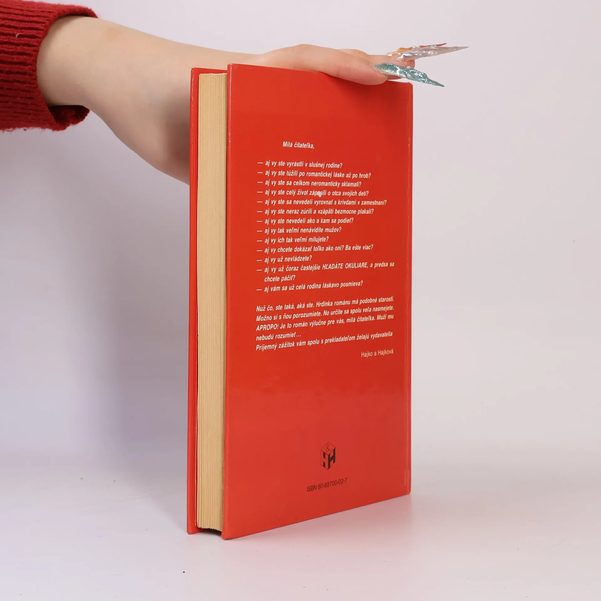 Román výlučne pre ženy. Román francúzskej spisovateľky, ktorá je na Slovensku známa predovšetkým zo svojho divácky úspešného rodinného seriálu Čo je to za fuška, predstavuje život modernej ženy so všetkými starosťami aj radosťami každodenného života. Autorka šľachtického pôvodu však neponúka ani život dám obsypaných briliantovými prsteňmi, ani unudené filmové hviezdy popíjajúce šampanské vo vani, jej vždy ide o čosi viac. Buronová správne chápe, ako nám všetkým chýba obyčajná každodenná láska, porozumenie a predovšetkým rodinná súdržnosť. A tak sa nám ju pokúša odovzdať svojou knihou. Sú v nej pravdaže aj slzy, aj problémy. Predovšetkým však spontánny humor, ktorým sa je možné oslobodiť aj toho najväčšieho trápenia. - (Buron de Nicole)