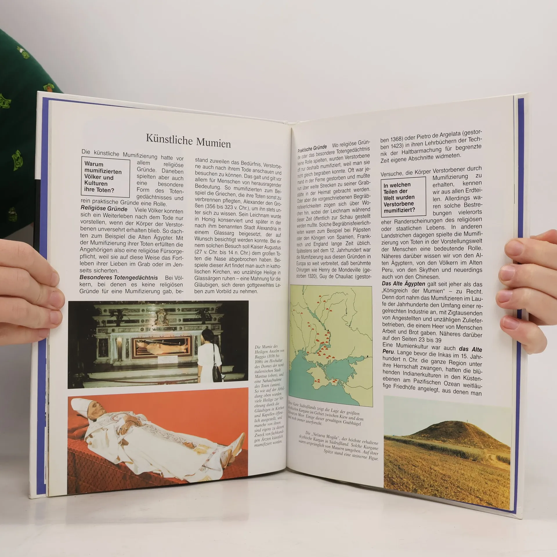 Nicht nur in Ägypten sondern auch in China, Grönland und vielen anderen Ländern wurden im ewigen Eis, in Wüsten und Mooren Mumien gefunden. Dank der modernen Forschung geben sie Aufschluss über Lebensgewohnheiten und Kulturen: Wie sahen die Menschen damals aus? Wovon ernährten sie sich? Warum balsamierten die Ägypter ihre Toten ein?