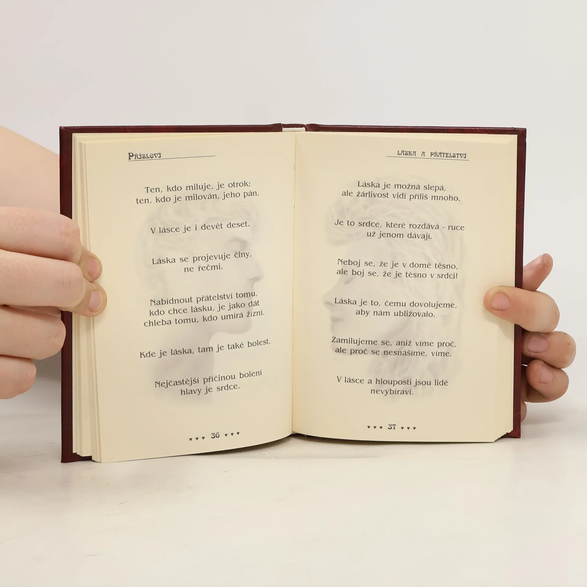 Dárkově a výtvarně vkusně vypravená knížka je sbírkou nejrůznějších přísloví a vtipných postřehů, týkajících se lásky a přátelství.