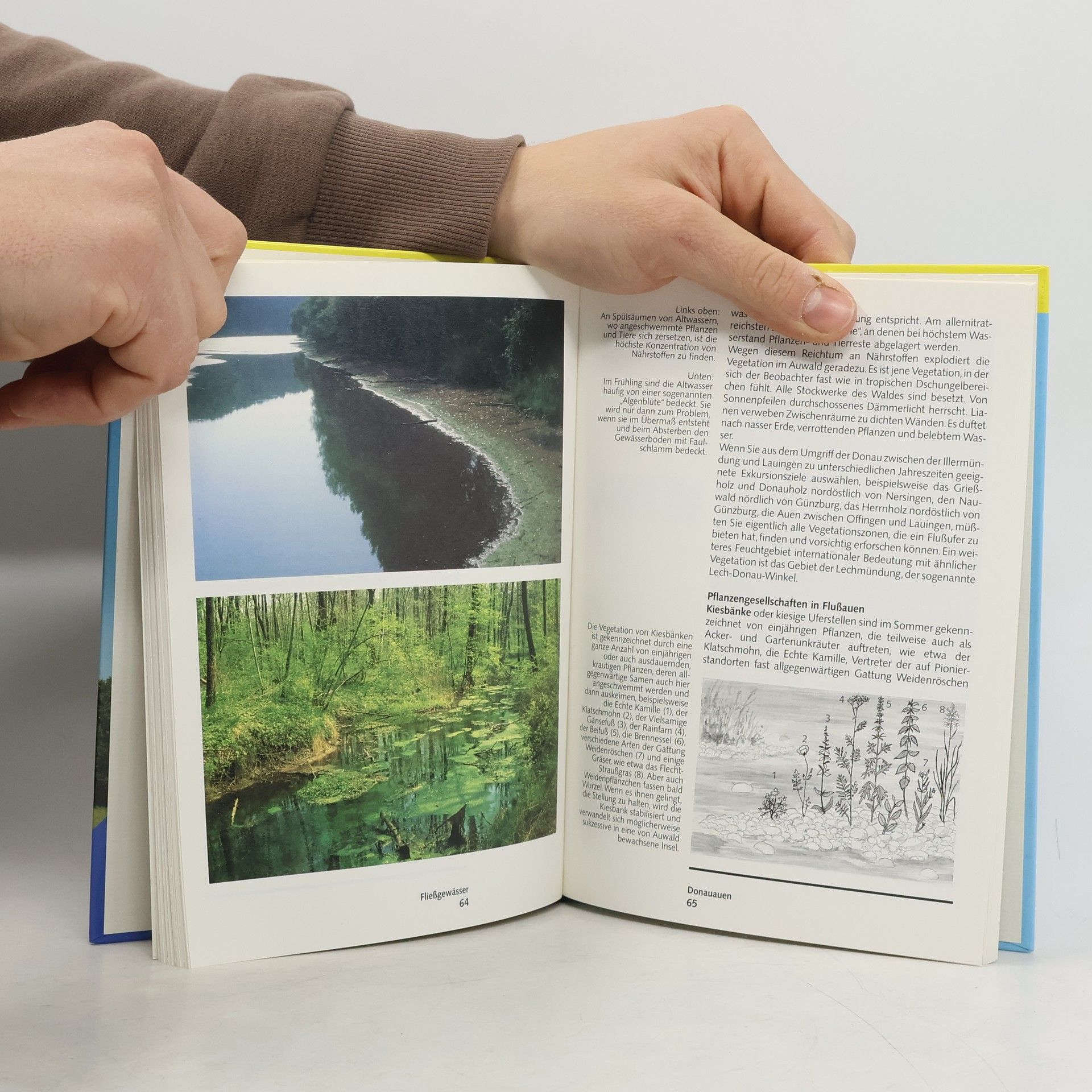 Ein neues Buch in der sehr guten Reihe "Natur erleben" des Maier-Verlages. Feuchtgebiete aller Art sind in Mitteleuropa überall in ihrem Bestand gefährdet oder durch Verbau und Verschmutzung beeinträchtigt. Dieses Buch gibt vor allem einen biologischen Überblick. Dabei werden besonders die 17 von der Bundesrepublik zu einer internationalen Konvention angemeldeten Großfeuchtgebiete berücksichtigt. Daneben aber ebenfalls Informationen über Kleingebiete wie Quellen und Teiche. Gut verständlich und gut lesbar, zweckmäßig illustriert, inhaltsreich, geeignet schon für Schüler der Sekundarstufe I. (1 S)