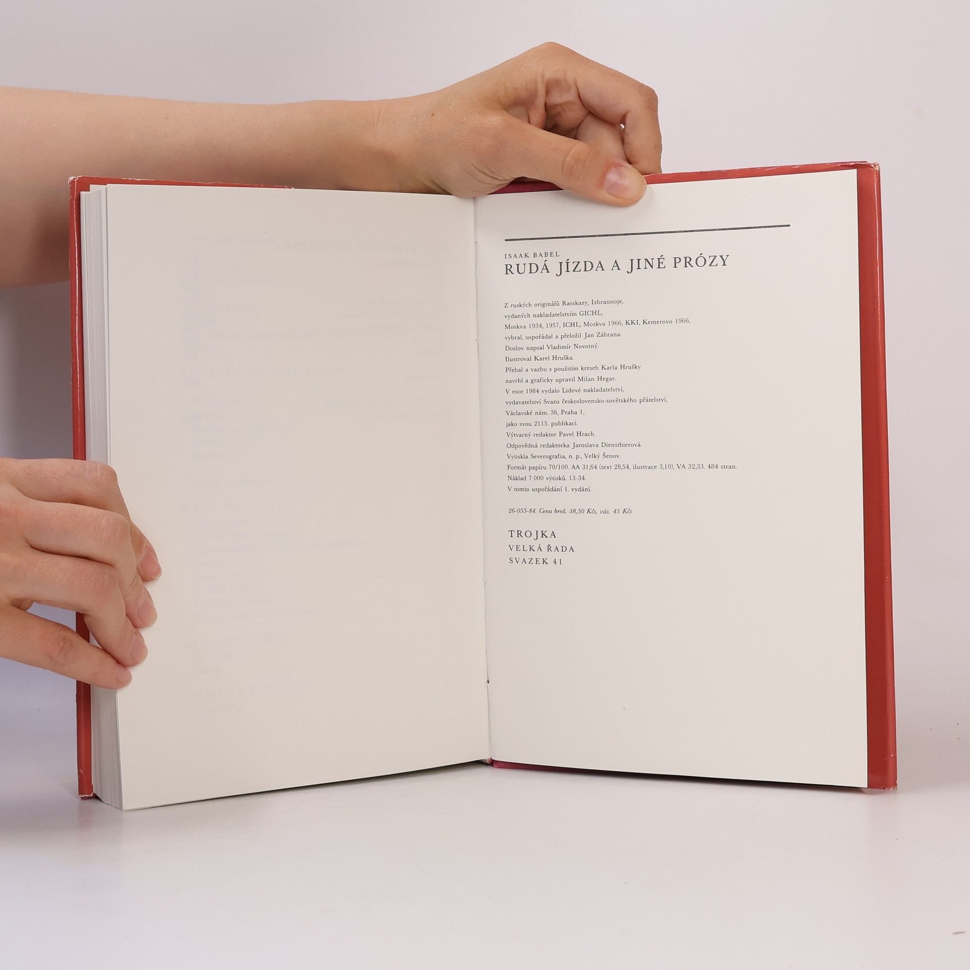 Obsah: Rudá jízda – Povídky do Rudé jízdy nezařazené – Oděské povídky – Historie mého holubníku – Ostatní povídky – Povídky na cizí námět – Rané povídky – Divadelní hry (Západ slunce, Marija) – Filmová povídka (Beňa Krik) – Črty, fejetony, vzpomínky. Vybral, uspořádal a přeložil Jan Zábrana. V tomto uspořádání vydání první.