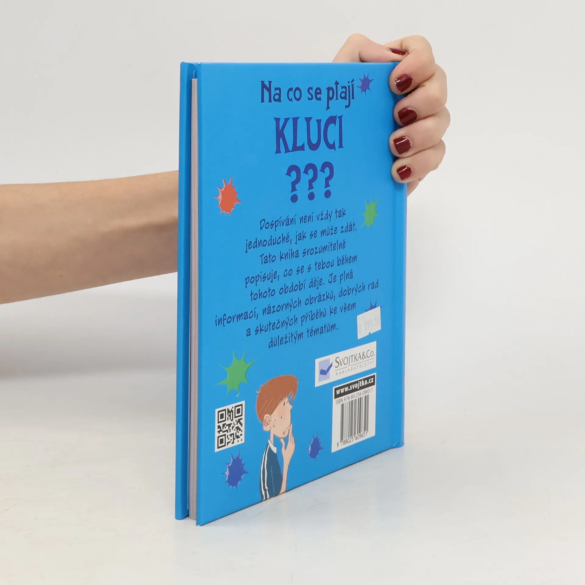 Dospívání není vždy tak jednoduché, jak by se mohlo zdát. Na co se ptají kluci? Tato kniha jednoduše a srozumitelně popisuje, co se s tebou během tohoto nelehkého období děje. Je plná informací, názorných obrázku, dobrých rad týkajících se všech důležitých témat i historek ze života. Můžeš ji přečíst od začátku do konce nebo si vybrat jen ty části, které tě právě zajímají. Leccos z toho ti muže připadat složité, něco dokonce trapné, něco naopak úsměvné, možná budeš mít z něčeho obavy. Ale až se vším "prokoušeš", budeš mít určitě dobrou představu o tom, co tě čeká a co se to s tebou vlastně děje. Kromě toho zde najdeš pár skvělých rad, díky nimž se dokážeš vyhnout mnoha trapným situacím.
