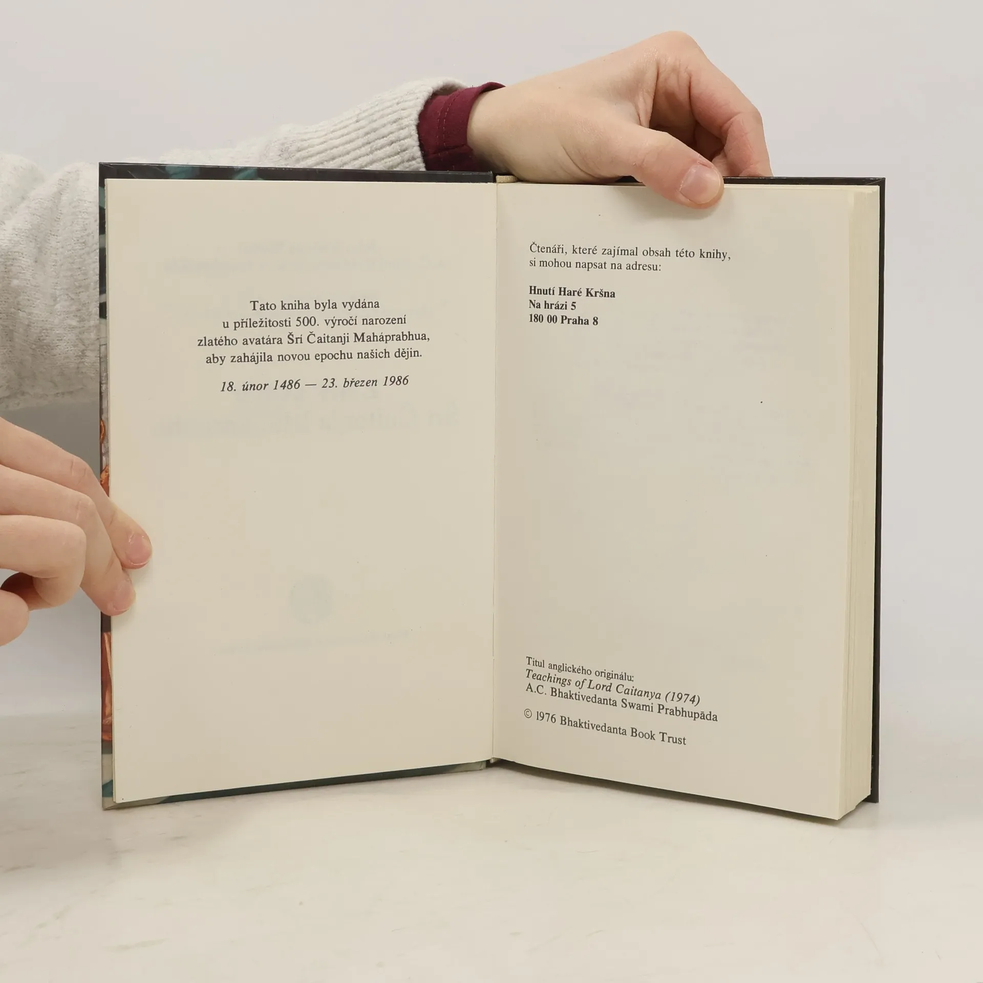 Šrí Šrímad A. Č. Bhaktivédanta Swami Prabhupáda Tato kniha popisuje život a učení Šrí Čaitanji Maháprabhua, který před pěti sty léty v Indii vlastním příkladem ukázal jediný praktický způsob seberealizace pro tento věk - zpívání Haré Kršna mahá-mantry. V současné době je jasnější než kdykoliv jindy, že nelze docílit míru na světě, dokud nenajdeme mír v sobě. Všichni hledáme štěstí, ale nikdo neví, co pravé štěstí je - ve skutečnosti jsou pouze něktěří lidé šťastní, neboť málokdo ví, že věčné štěstí existuje mimo úroveň pomíjivých věcí. A. Č. Bhaktivédanta Swami Prabhupáda předkládá v této knize způsob, jak všichni lidé na celém světě mohou dosáhnout míru a štěstí. Vydal: The Bhaktivedanta Book Trust
