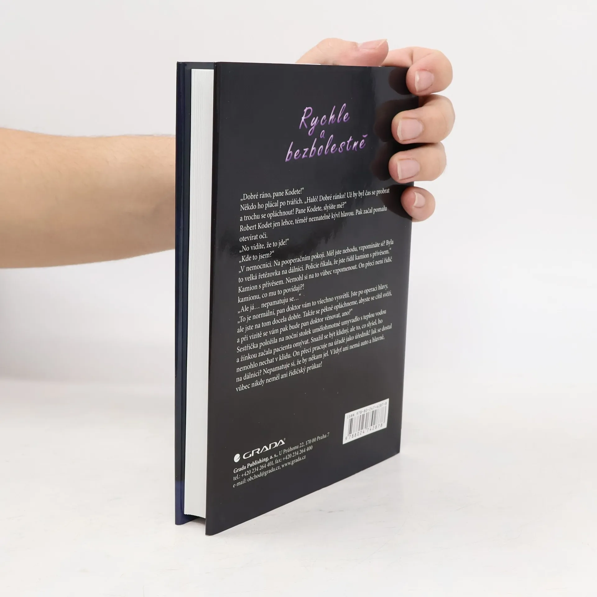 "Včera tam ještě nebyl. Jen prázdné, špinavé výlohy. Dnes, s úderem deváté, se tu objevil. Aranžérka pověsila do výlohy velký plakát a nad vchodem se rozsvítil neonový nápis: Rychle a bezbolestně. Nic víc. Nový obchod na pěší zóně v Praze." Tak začíná poutavý román RYCHLE A BEZBOLESTNĚ, autorky Markéty Dočekalové, který vám tentokrát předkládá nevšední příběh plný magie a napětí. Kdo by nechtěl získat něco rychle a bez námahy? Třeba se naučit cizí jazyk, nebo zhubnout lusknutím prstů? Stačí jediný podpis a přání může být splněno. V románu se proplétají osudy postav, které nabídce neodolaly, ale i těch, jejichž osud změnili jiní. V životě však nic není zadarmo a každý za své přání jednoho dne zaplatí.