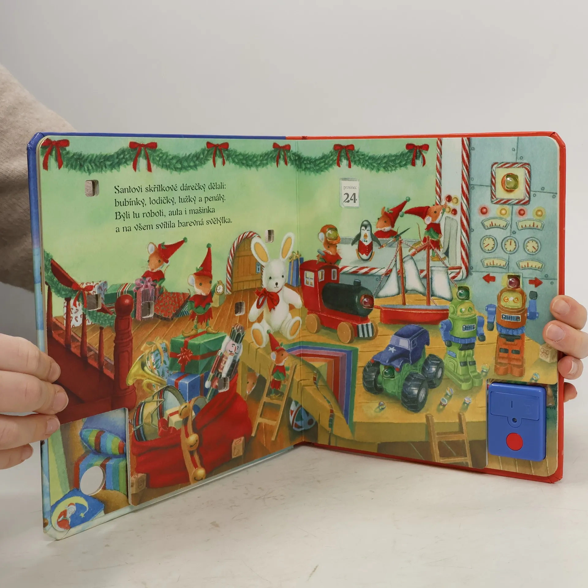 Malí medvídci nemohou o štědrovečerní noci usnout a když se jim to nakonec podaří, zdá se jim o zimním městečku Santa Clause a spoustě vánočních dárků. Na druhý den ráno i na ně čeká pod stromečkem překvapení. Malá vánoční pohádka v leporelu a s elektrickými světýlky. Pro nejmenší děti