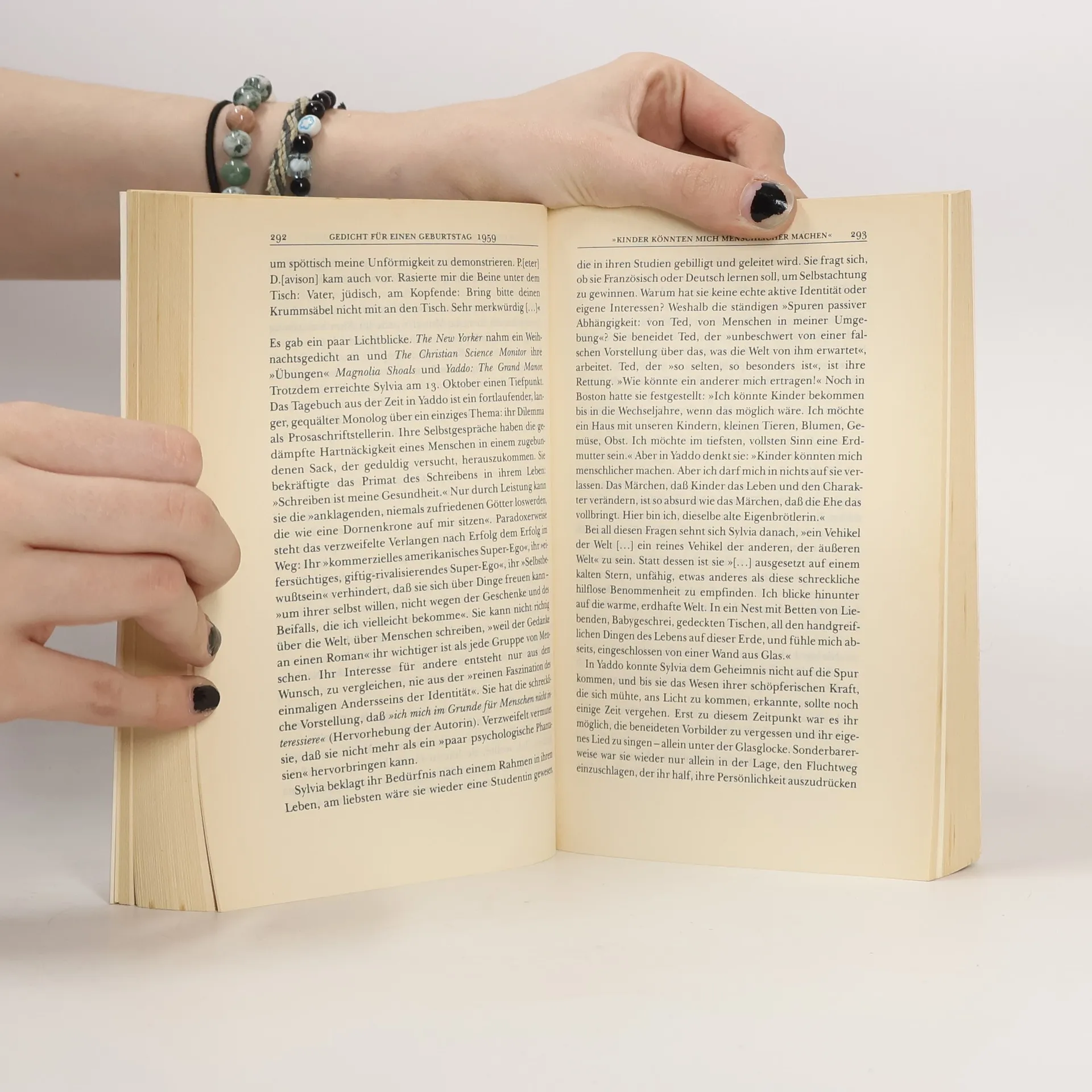 »Ich habe versucht«, schreibt die Biographin, »mich dieser ungewöhnlichen Künstlerin so zu nähern, wie sie es meiner Meinung nach gefordert hätte - als Dichterin.« Doch nicht nur Sylvia Plaths schriftstellerische Zeugnisse, sondern auch Zeit- und Augenzeugenberichte finden Eingang in Anne Stevensons gründlich recherchierte Biographie. Ihr gelingt es, die zahlreichen Widersprüche des Menschen Sylvia Plath sichtbar zu machen: die unbewältigten Kindheitsängste ausgehend vom frühen Tod des Vaters, die versteinerten gesellschaftlichen Verhältnisse der fünfziger Jahre in den Vereinigten Staaten und damit verbunden die Suche nach Bestätigung als Frau, Ehefrau und Mutter. Gleichzeitig werden auch Sylvia Plaths unerhörter Ehrgeiz als Studentin, ihr Ringen um Anerkennung und Perfektion als Schriftstellerin und nicht zuletzt ihr Konkurrieren mit ihrem damals bereits als Lyriker erfolgreichen Ehemann Ted Hughes deutlich.