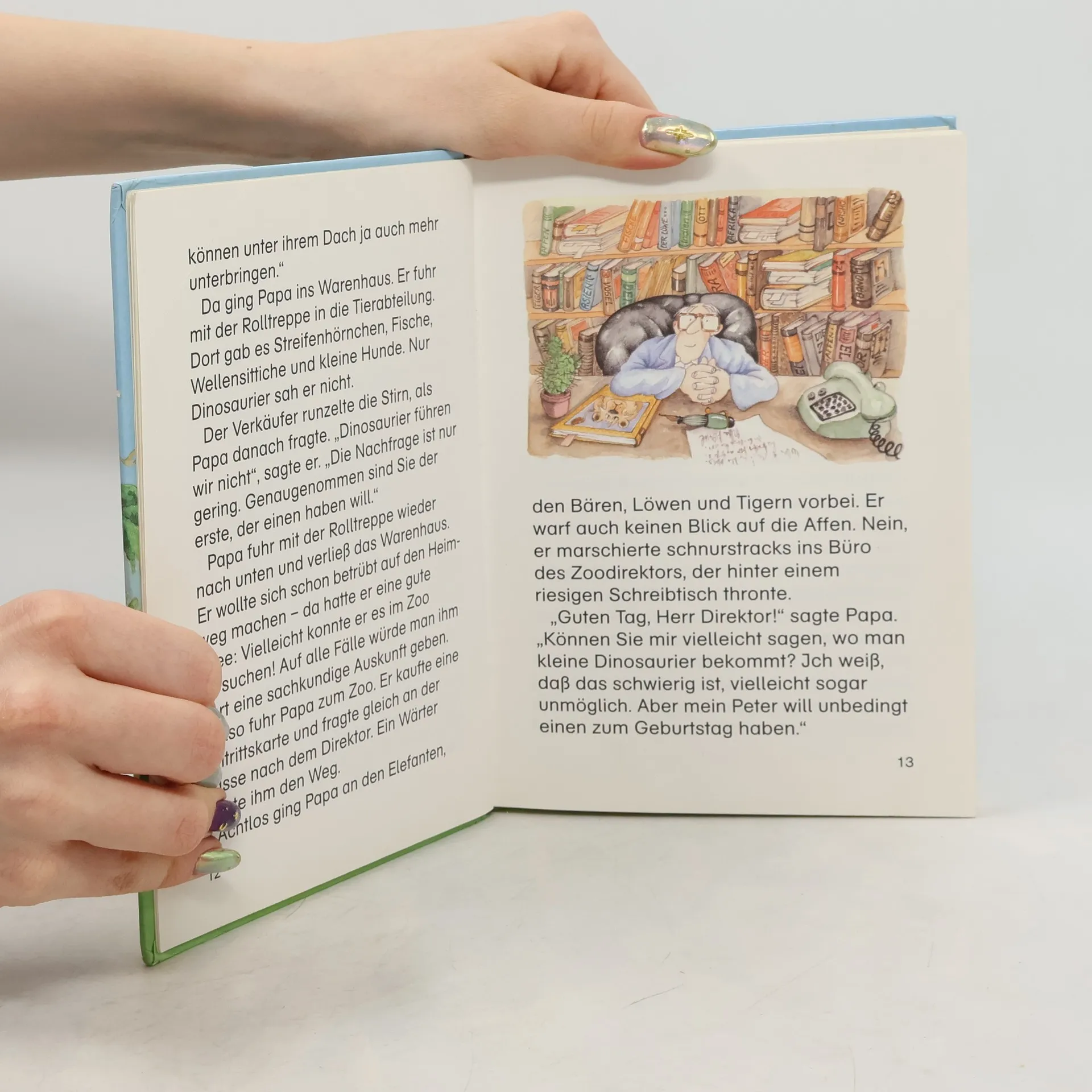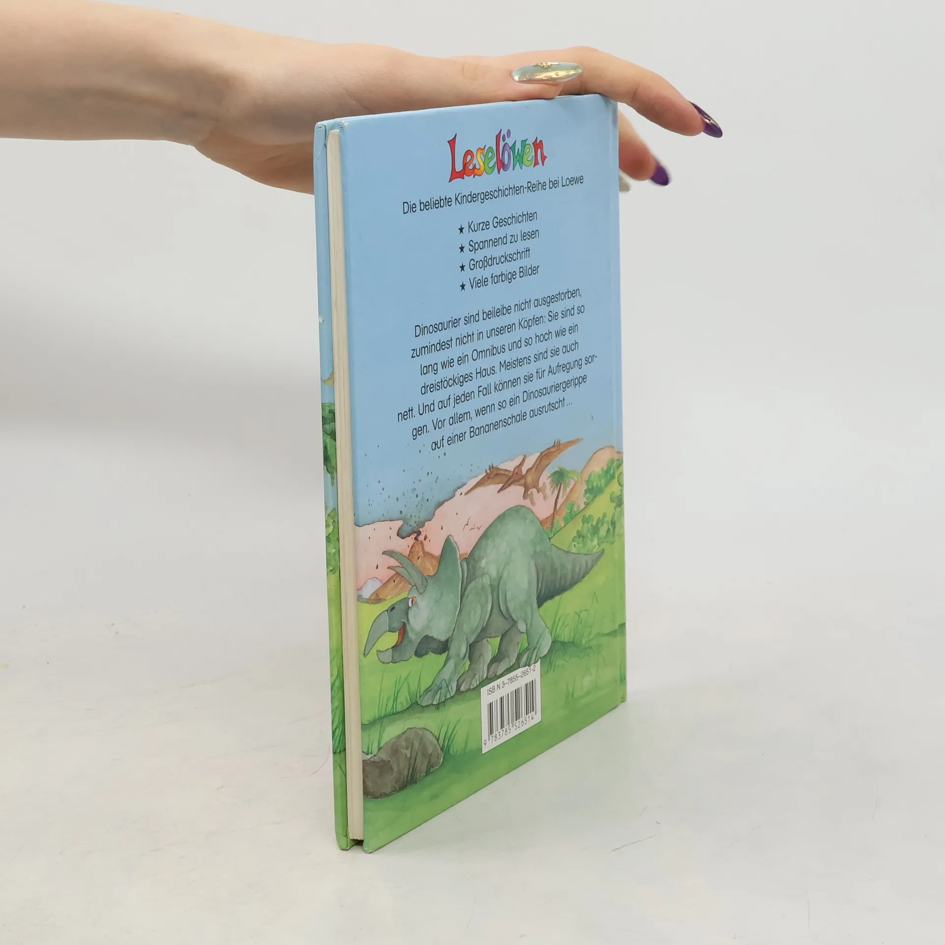 Lesealter ab 8 4. Stufe der Loewe-Leseleiter Kurze Geschichten Großdruckschrift Dinosaurier sind beileibe nicht ausgestorben, zumindest nicht in unseren Köpfen: Sie sind so lang wie ein Omnibus und so hoch wie ein dreistöckiges Haus. Meistens sind sie ja auch nett, manchmal sogar samtweich. Und auf jeden Fall können sie für Aufregung sorgen.
