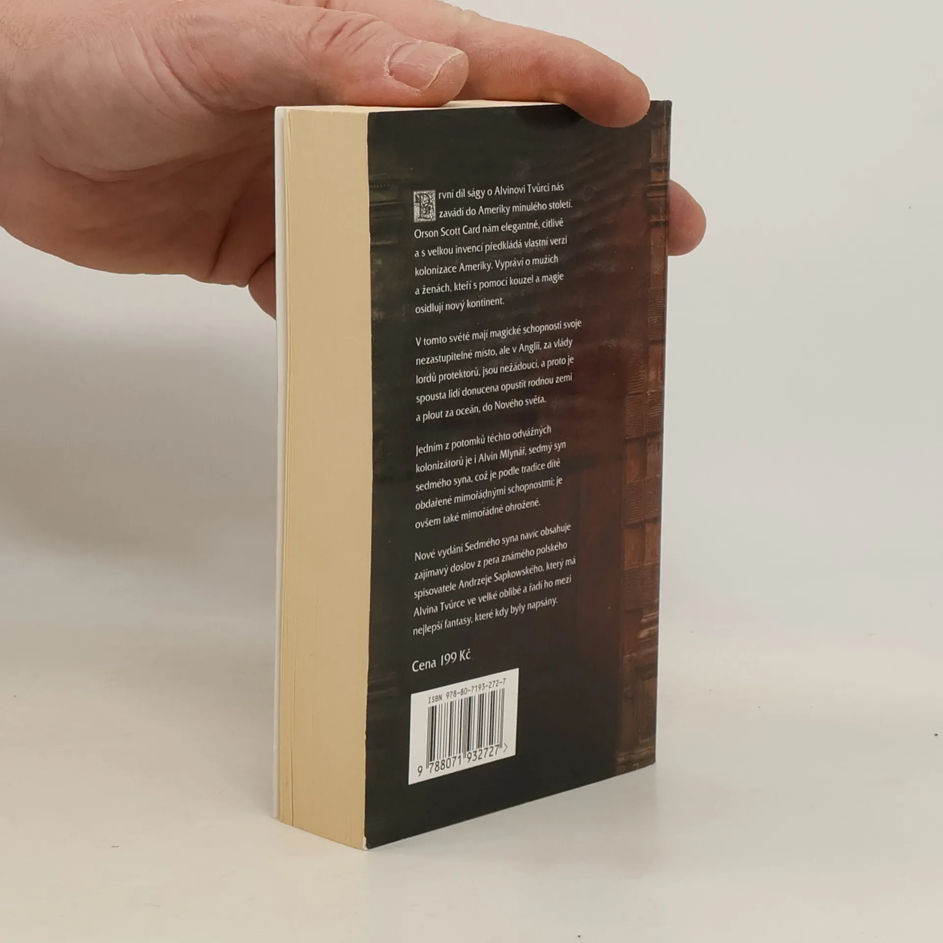 První díl ságy o Alvinovi Tvůrci nás zavádí do Ameriky minulého století. Orson Scott Card nám elegantně, citlivě a s velkou invencí předkládá vlastní verzi kolonizace Ameriky. Vypráví o mužích a ženách, kteří s pomocí kouzel a magie osidlují nový kontinent. V tomto světě mají magické schopnosti svoje nezastupitelné místo, ale v Anglii, za vlády lordů protektorů, jsou nežádoucí, a proto je spousta lidí donucena opustit rodnou zemi a plout za oceán, do Nového světa. Jedním z potomků těchto odvážných kolonizátorů je i Alvin Mlynář, sedmý syn sedmého syna, což je podle tradice dítě obdařené mimořádnými schopnostmi; je ovšem také mimořádně ohrožené. Nové vydání Sedmého syna navíc obsahuje zajímavý doslov z pera známého polského spisovatele Andrzeje Sapkowského, který má Alvina Tvůrce ve velké oblibě a řadí ho mezi nejlepší fantasy, které kdy byly napsány.