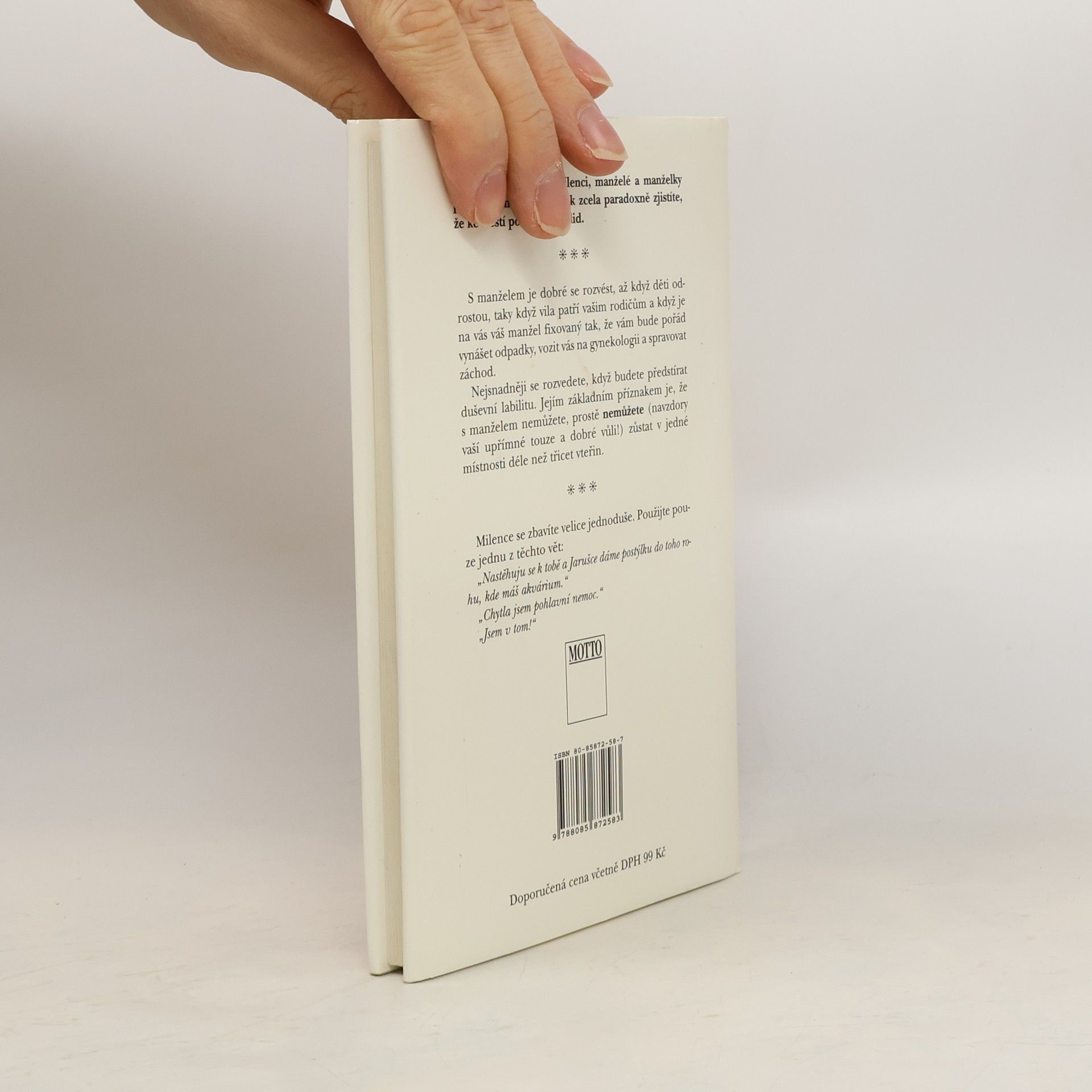 Lehké poznatky, vyslechnuté osudy a rady, které si dávají kamarádky, kamarádi, rodiče, děti a známí. Neberte všechno, co je na papíře, vážně. Slova mají totiž skutečnou vážnost jen tehdy, když jde o petice, o závěť a o smlouvy...