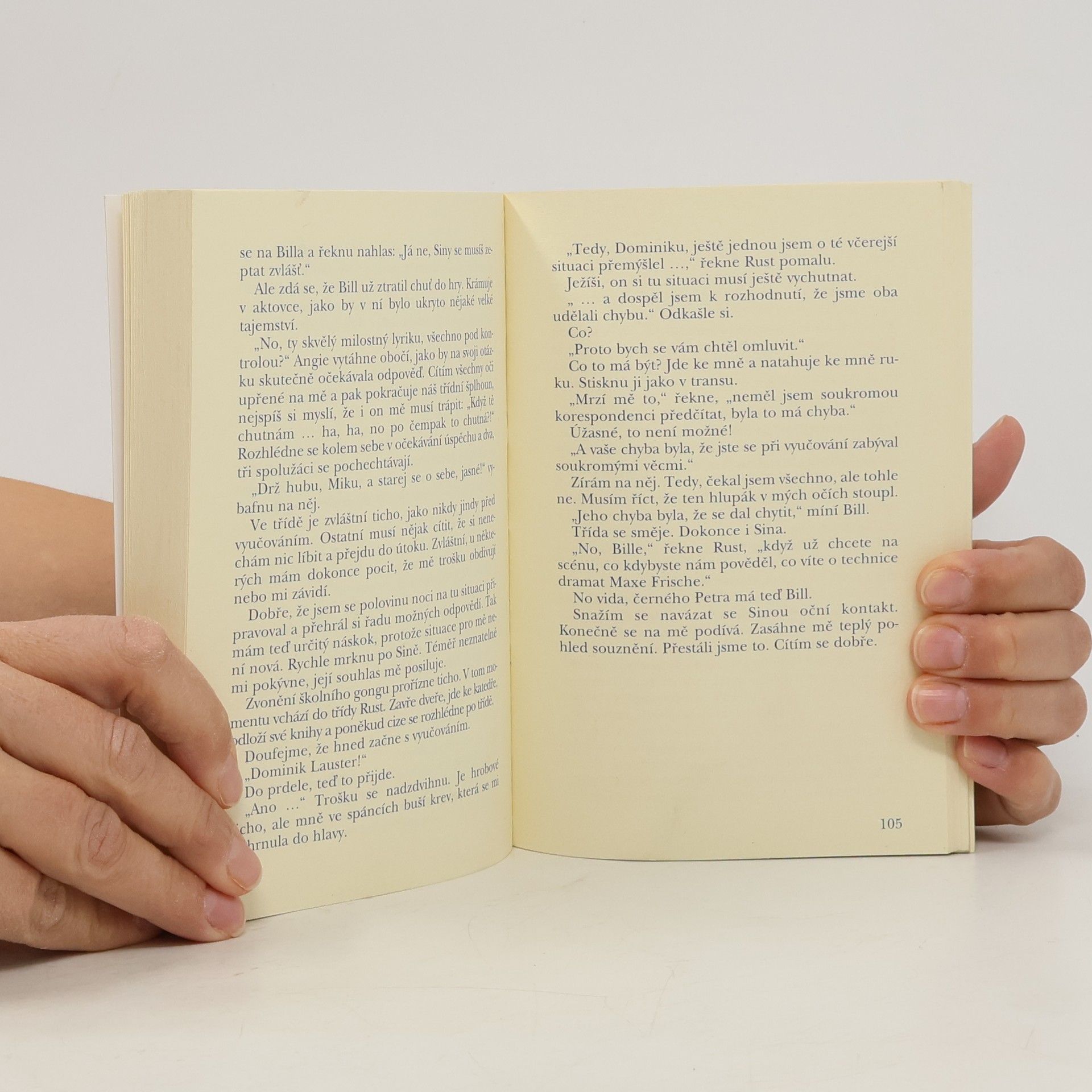 Román pro dospívající dívky přináší příběh lásky i trápení očima sedmnáctileté Siny i osmnáctiletého Dominika. Kniha se skládá ze dvou částí: "První láska" a "První hádka". Postupně se seznamujeme se Sinou a její kamarádkou Katrin i s Dominikem, který po prázdninách přichází do Sininy třídy. Nesmělý zájem se mění v romantickou lásku, kde nechybí ani první sexuální zkušenost. Nic ale není jen růžové, jak se na počátku zdálo. Sina chce mít Dominika jen pro sebe, nechápe, že on má i jiné zájmy - fotbal, přátele, že prostě potřebuje volnost. Vše se začíná komplikovat ještě víc, když matematiku začne Dominika doučovat atraktivní Paula. Zajímavostí knihy je především to, že vše sledujeme zároveň z pohledu Siny i Dominika, graficky odlišeno barvou textu (červená, modrá).