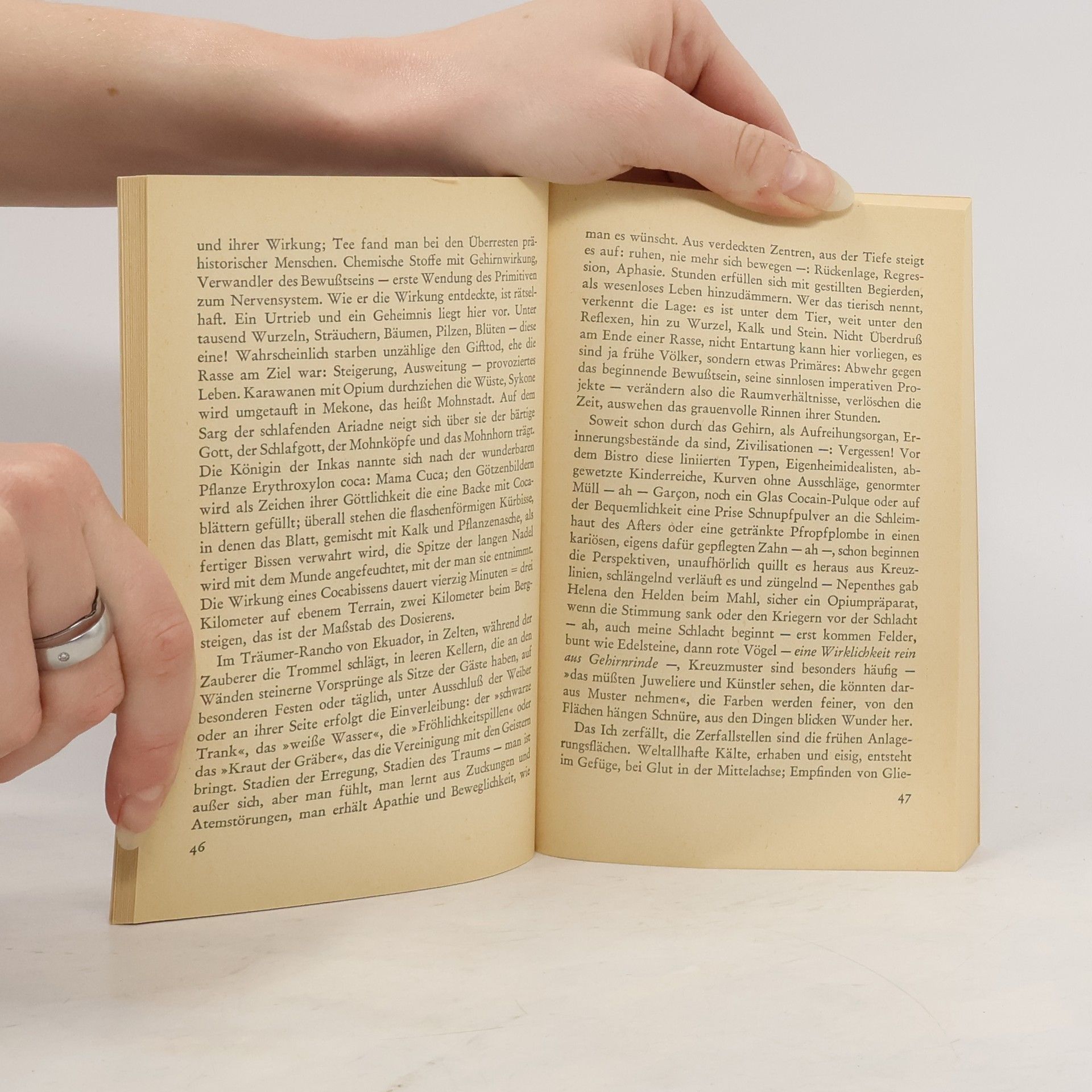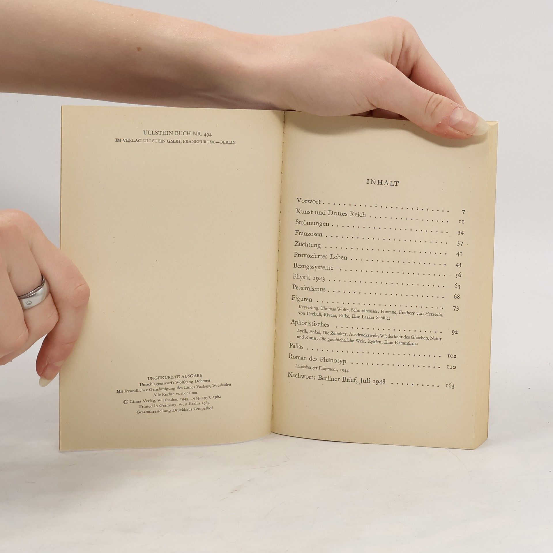 Benn argumentiert nicht politisch; er will nicht überzeugen. Seine Gedankengänge kommen her von einer Sphäre der ästhetischen Gebilde, der »Ausdruckswelt«, die für sich besteht und keiner Rechtfertigung bedarf. Aber darin werden biologische und geistige Mutationsvorgänge berührt, die über bloß geschichtliche Veränderungen weit hinausreichen: »Der Mensch ist etwas anderes; als die vergangenen Jahrhunderte dachten.« Das in den Jahren des Verfemtseins gehärtete Selbstbewußtsein eines »Schädlings« wird auch gegen die neue Öffentlichkeit beibehalten. Es erlaubt Benn Einsichten. außerhalb jedes offiziösen Konsensus’; Der Essay »Provoziertes Leben«, mit den Gedanken eines Dichters und Mediziners über die Steigerung der ästhetischen Produktivität durch bewußtseinserweiternde Drogen, steht in der deutschen Geistesgeschichte allein da.