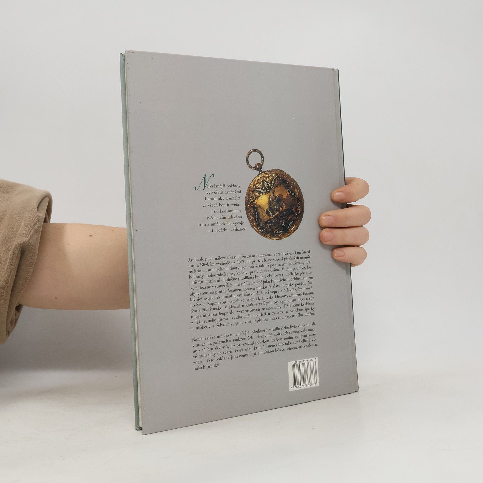 Nejkrásnější poklady, vytvořené zručnými řemeslníky a umělci ze všech koutů svět, jsou fascinujícím svědectvím lidského umu a uměleckého vývoje od počátku civilizace. V této poutavé, bohatě fotografiemi doplněné publikaci budete obdivovat umělecké předměty, nalezené v sumerském městě Ur, stejně jako Heinrichem Schliemannem objevenou elegantní Agamemnónovu masku či zlatý Trójský poklad.