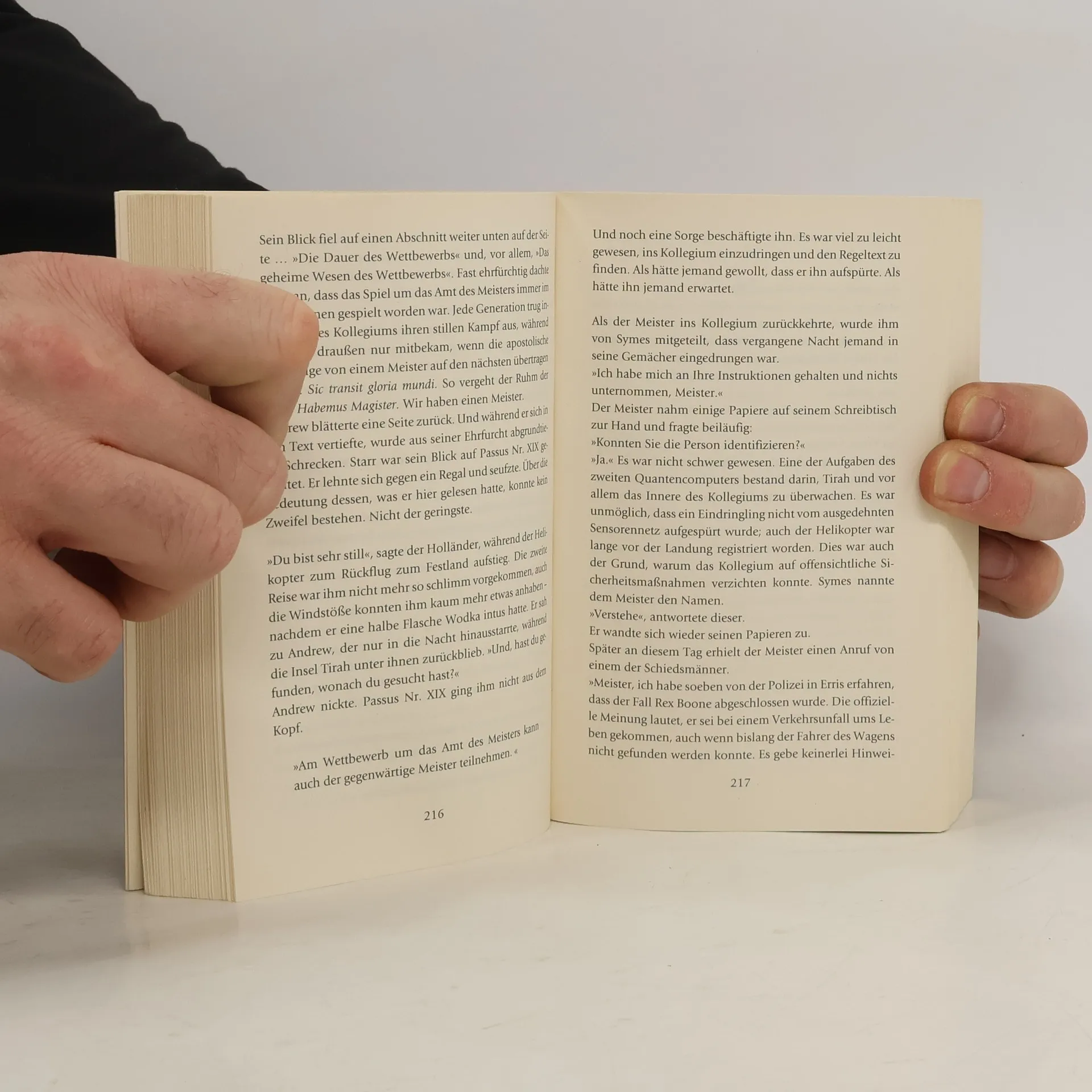 Das Kollegium, eine elitäre Geheimgesellschaft, die sich der Bewahrung des Weltfriedens verschrieben hat, muss einen neuen Meister erwählen. Diesem Ziel dient ein Wettbewerb, der sich über ein Jahr erstreckt. Doch die fünf Auserwählten kennen die Regeln nicht. Einzig der Hinweis auf ein prachtvoll gearbeitetes chinesisches Kästchen leitet sie. Schnell zeigt sich, dass die fünf Anwärter zu fast allem bereit sind, um als Sieger aus dem Spiel um die Meisterschaft hervorzugehen ...