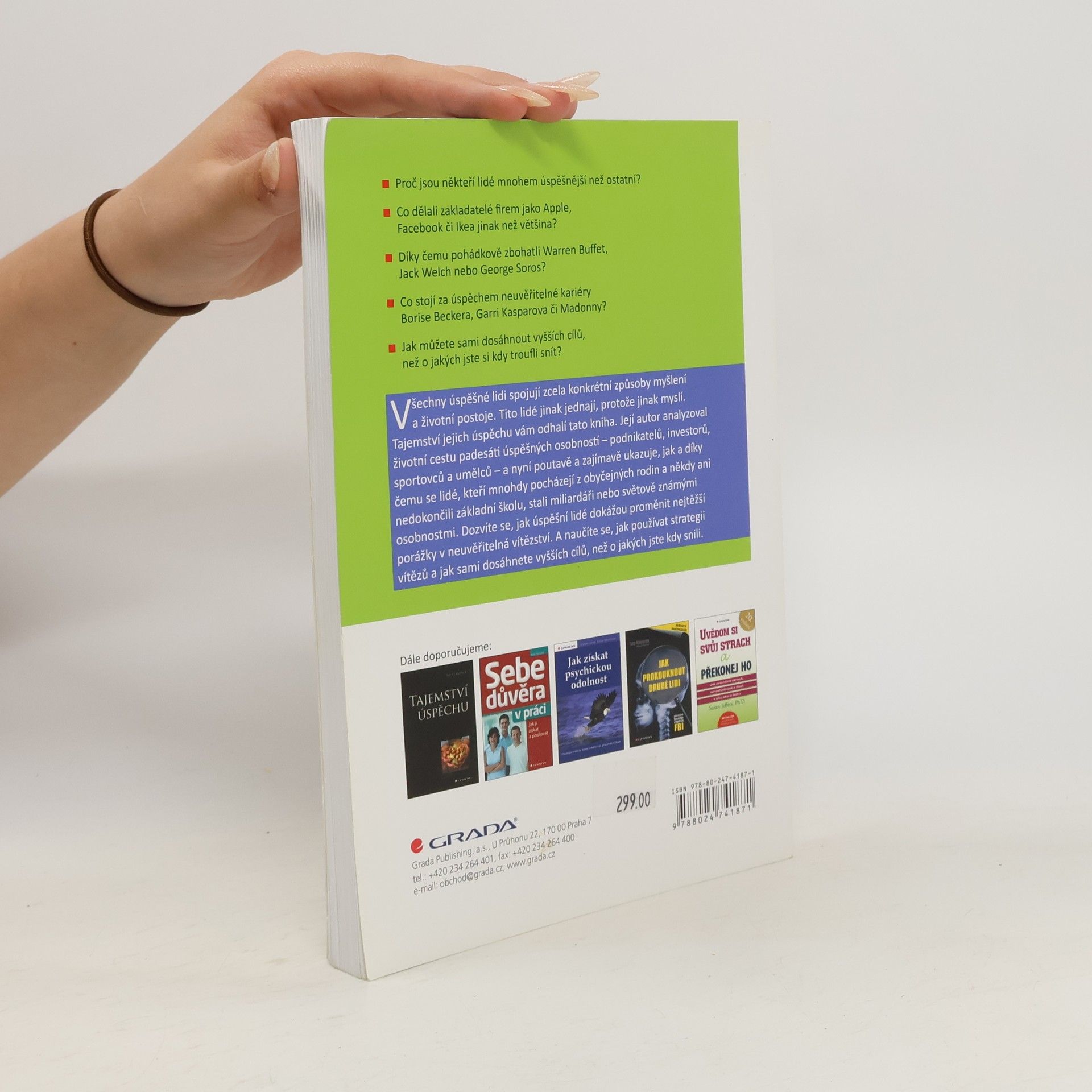 Proč jsou někteří lidé mnohem úspěšnější než ostatní? Co dělali zakladatelé firem jako Apple, Facebook či Ikea jinak než většina? Díky čemu pohádkově zbohatli Warren Buffet, Jack Welch nebo George Soros? Co stojí za úspěchem neuvěřitelné kariéry Borise Beckera, Garri Kasparova či Madonny? Jak můžete sami dosáhnout vyšších cílů, než o jakých jste si kdy troufli snít? Všechny úspěšné lidi spojují zcela konkrétní způsoby myšlení a životní postoje. Tajemství jejich úspěchu vám odhalí tato kniha. Její autor analyzoval životní cestu padesáti úspěšných osobností a nyní poutavě a zajímavě ukazuje, jak a díky čemu se lidé, kteří mnohdy pocházejí z obyčejných rodin, stali miliardáři nebo světově známými osobnostmi. Dozvíte se, jak úspěšní lidé dokážou proměnit nejtěžší porážky v neuvěřitelná vítězství. A naučíte se, jak používat strategii vítězů a jak sami dosáhnete vyšších cílů, než o jakých jste kdy snili.