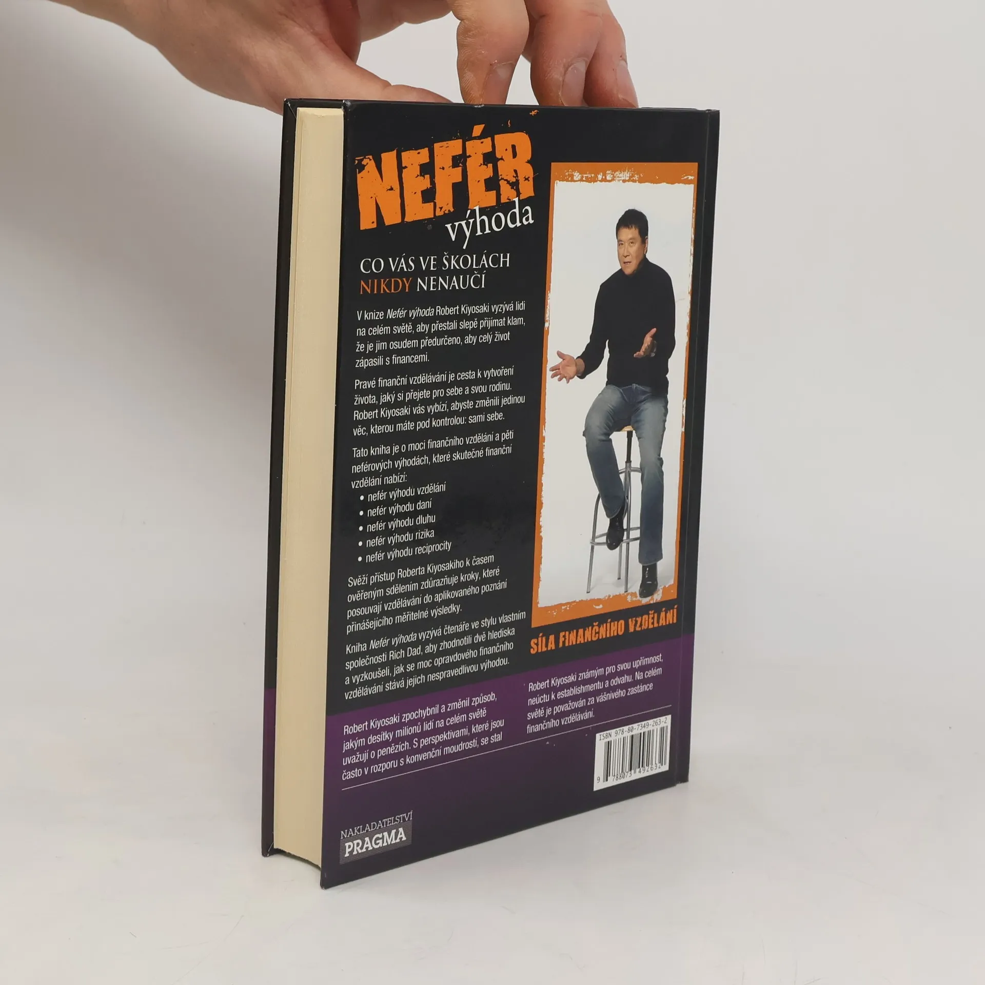 Autor bestselleru Bohatý táta, chudý táta Robert Kiyosaki zpochybnil a změnil způsob, jakým desítky milionů lidí na celém světě uvažují o penězích. S perspektivami, které jsou často v rozporu s konvenční moudrostí, se stal známým pro svou upřímnost, neúctu k establishmentu a odvahu. Na celém světě je proto považován za vášnivého zastánce finančního vzdělávání. V knize Nefér výhoda vyzývá Robert Kiyosaki lidi na celém světě, aby přestali slepě přijímat klam, že je jim osudem předurčeno, aby celý život zápasili s financemi. Vybízí je, abyste změnili jedinou věc, kterou mají pod kontrolou, a to sami sebe. Jedině pravé finanční vzdělávání je cesta k vytvoření života, jaký si člověk přejete pro sebe a svou rodinu. Tato kniha je o moci finančního vzdělání a pěti neférových výhodách, které skutečné finanční vzdělání nabízí: •neférovou výhodu vzdělání •neférovou výhodu daní •neférovou výhodu dluhu •neférovou výhodu rizika •neférovou výhodu reciprocity Kniha Nefér výhoda vyzývá čtenáře ve stylu vlastním společnosti Rich Dad, aby zhodnotili všechna hlediska a vyzkoušeli, jak se síla opravdového finančního vzdělání stává jejich nespravedlivou výhodou.