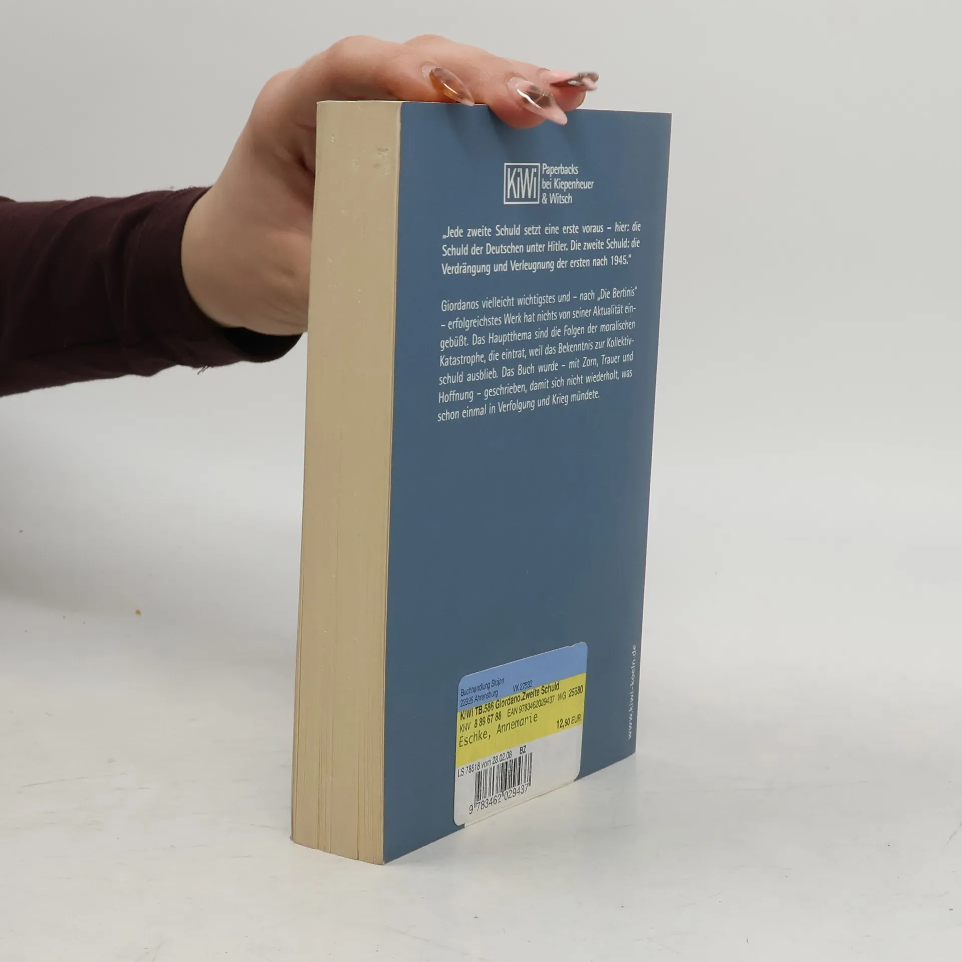 'Jede zweite Schuld setzt eine erste voraus – hier: die Schuld der Deutschen unter Hitler. Die zweite Schuld: die Verdrängung und Verleugnung der ersten nach 1945.' Die zweite Schuld hat die politische Kultur der Bundesrepublik bis auf den heutigen Tag wesentlich mitgeprägt. Ihr Kern ist die kalte Amnestie für jede Art von Naziverbrechern, darunter hohe Repräsentanten des NS-Vernichtungsapparats: Blutrichter und -staatsanwälte, Militärs, Diplomaten, Wirtschaftsführer – die Funktionselite des 'Dritten Reichs', die bis 1958 nahezu lückenlos wieder in die Nachkriegsgesellschaft eingegliedert war. Ralph Giordano nennt das den 'großen Frieden mit den Tätern', für ihn ein Fundament der bundesdeutschen Staatsexistenz. Das Hauptthema Giordanos sind die Folgen der moralischen Katastrophe, die eintrat, weil das Bekenntnis zur Kollektivschuld ausblieb. Das Buch ist eine gnadenlose Abrechnung mit zahlreichen Einzelposten einer langen politischen Mängelliste bundesdeutscher Wirklichkeit. Es wurde – mit Zorn, Trauer und Hoffnung – geschrieben, damit sich nicht wiederholt, was schon einmal in Verfolgung und Krieg mündete.