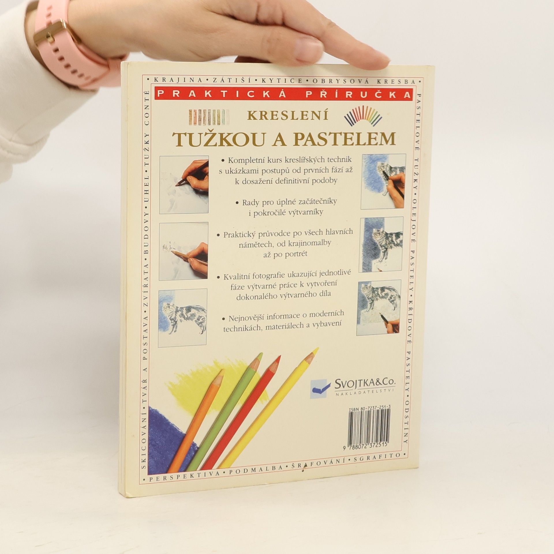 Kompletní kurs kreslířských technik s ukázkami postupu od prvních fází až k dosažení definitivní podoby. Rady pro úplné začátečníky i pokročilé výtvarníky.