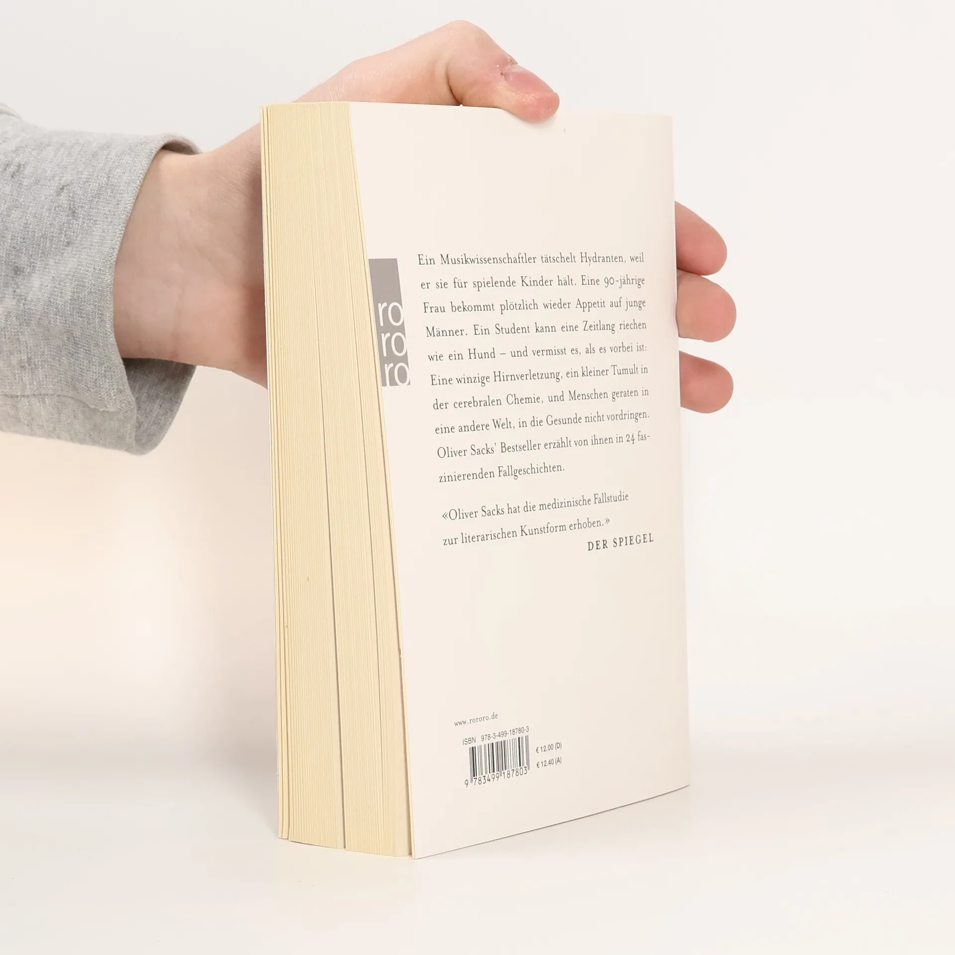 Ein Musikwissenschaftler tätschelt Hydranten, weil er sie für spielende Kinder hält. Eine 90jährige Frau bekommt plötzlich wieder Appetit auf junge Männer. Ein Student kann eine Zeitlang riechen wie ein Hund – und vermißt es, als es vorbei ist: Eine winzige Hirnverletzung, ein kleiner Tumult in der cerebralen Chemie, und Menschen geraten in eine andere Welt, in die Gesunde nicht vordringen. Oliver Sacks’ Bestseller erzählt von ihnen in 24 faszinierenden Fallgeschichten. «Oliver Sacks hat die medizinische Fallstudie zur literarischen Kunstform erhoben.» DER SPIEGEL