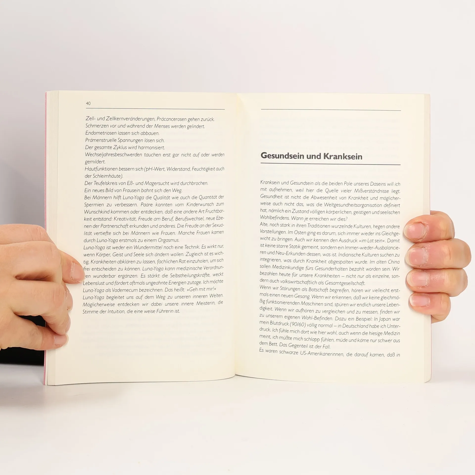 Luna Yoga® weckt Weiblichkeit und Lebensfreude In Harmonie mit dem Körper ganz Frau sein: Hier hilft Luna- Yoga, denn es wirkt ins Zentrum der Weiblichkeit, den Beckenbereich, hinein. Hormone und Durchblutung werden angeregt, die Aufmerksamkeit auf die eigene Mitte gelenkt. Luna-Yoga weckt die Fruchtbarkeit und ermutigt, auf die eigenen Körpersignale zu hören. So hilft es auch beim Wunsch, schwanger zu werden, bei Schwangerschaftsbeschwerden und in den Wechseljahren.