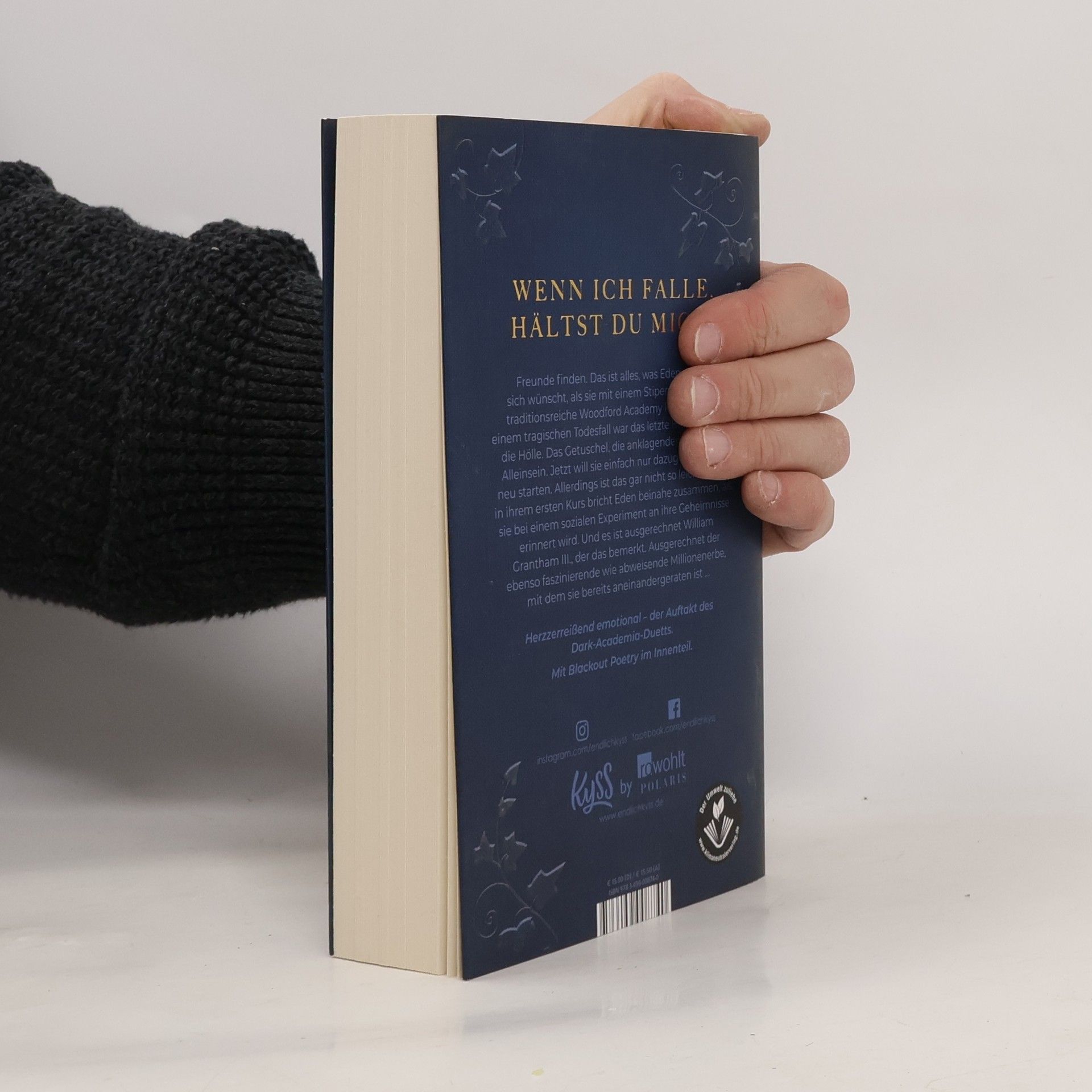 Wenn ich falle, hältst du mich? Der Auftakt zum Dark-Academia-Duett von Spiegel-Bestseller-Autorin Nikola Hotel. Freunde finden. Das ist alles, was Eden Collins sich wünscht, als sie mit einem Stipendium an die traditionsreiche Woodford Academy kommt. Nach einem tragischen Todesfall war das letzte Highschooljahr die Hölle. Das Getuschel, die anklagenden Blicke, das Alleinsein. Jetzt will sie einfach nur dazugehören und neu starten. Allerdings ist das gar nicht so leicht. Schon in ihrem ersten Kurs bricht Eden beinahe zusammen, als sie bei einem sozialen Experiment an ihre Geheimnisse erinnert wird. Und es ist ausgerechnet William Grantham III., der das bemerkt. Ausgerechnet der ebenso faszinierende wie abweisende Millionenerbe, mit dem sie bereits aneinandergeraten ist … Herzzerreißend emotional – für alle Fans von mitreißenden Liebesromanen und Dark Academia. Mit Blackout Poetry im Innenteil.