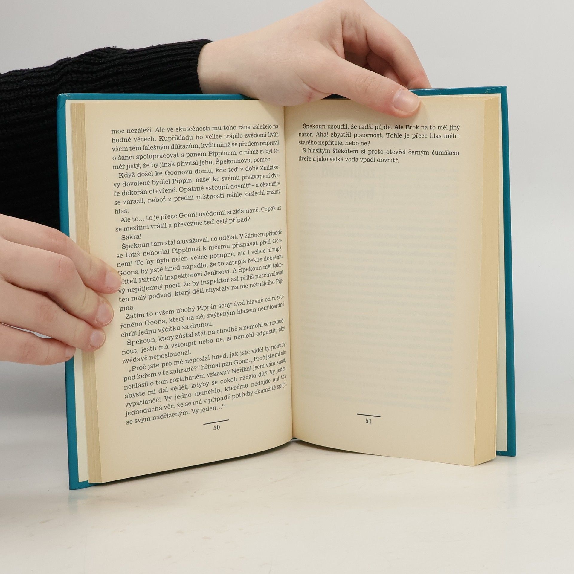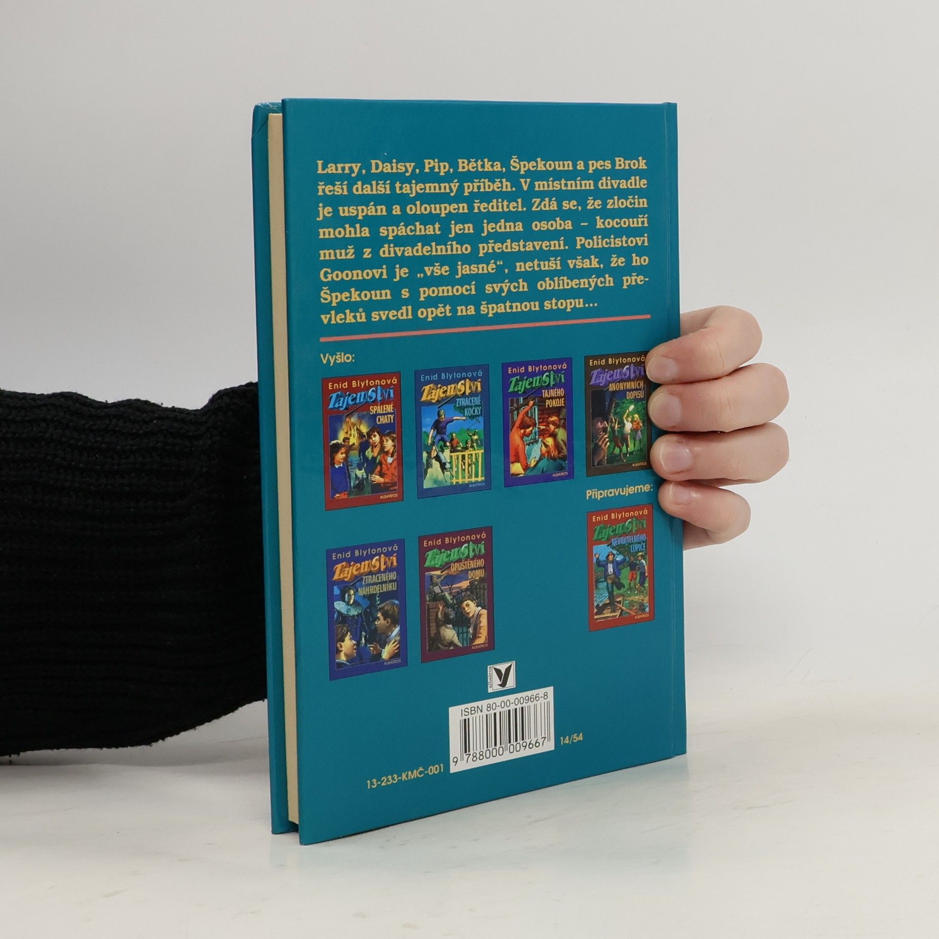 Pět pátračů - Larry, Daisy, Pip, Bětka, Špeknoun a jeho pes Brok se pouští do dalšího napínavého případu. V místním divadle byl v noci vyloupen trezor. Kdo z herců je podezřelý? Kdo se toužil pomstít krutému řediteli? Policistu Goonovi je okamžitě "vše jasné". Zločin mohla spáchat jen jedna osoba - prosťáček Boysie v kocouřím převleku. Pan Goon však netuší, že ho Špeknoun opět svedl na špatnou stopu...... celý text