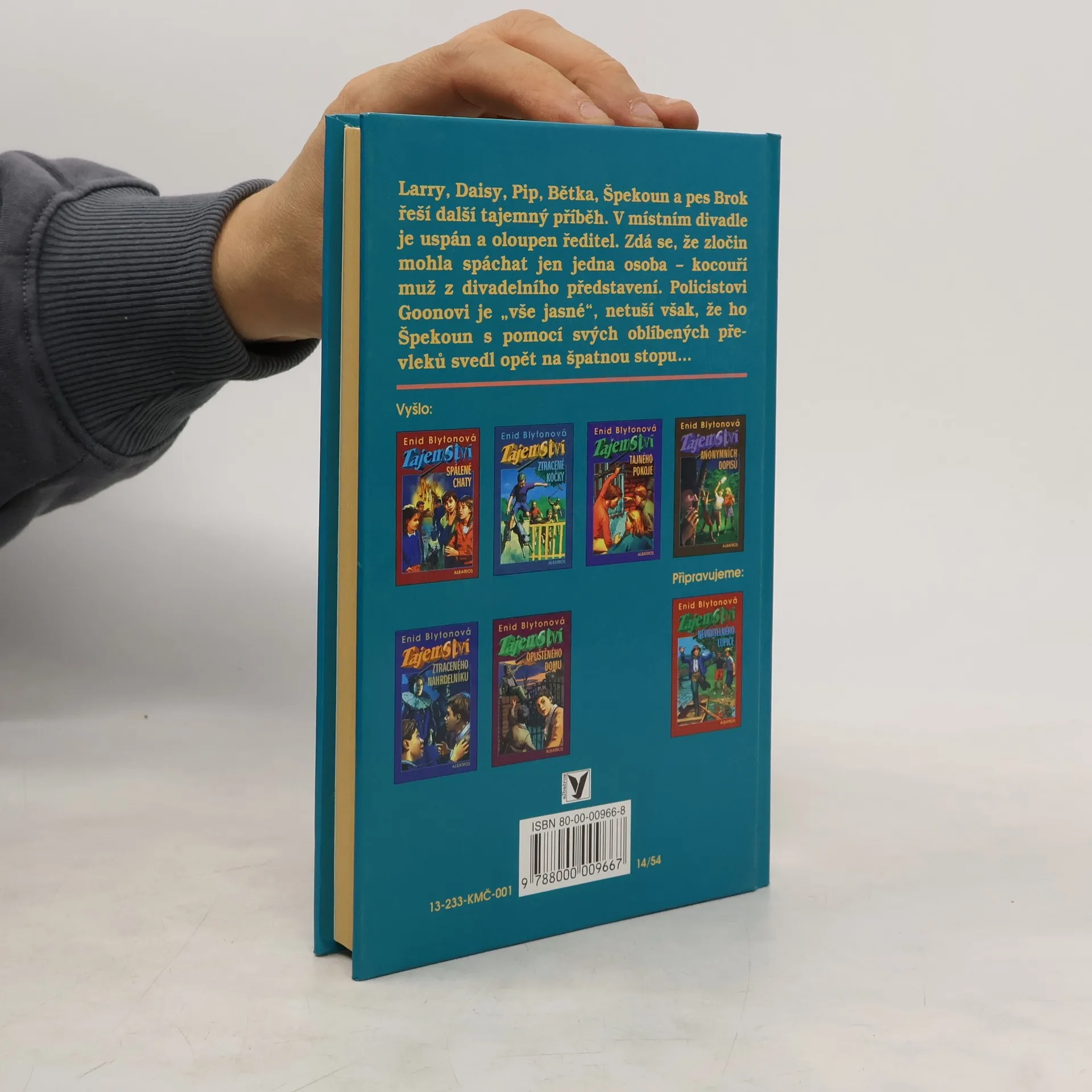 Pět pátračů - Larry, Daisy, Pip, Bětka, Špeknoun a jeho pes Brok se pouští do dalšího napínavého případu. V místním divadle byl v noci vyloupen trezor. Kdo z herců je podezřelý? Kdo se toužil pomstít krutému řediteli? Policistu Goonovi je okamžitě "vše jasné". Zločin mohla spáchat jen jedna osoba - prosťáček Boysie v kocouřím převleku. Pan Goon však netuší, že ho Špeknoun opět svedl na špatnou stopu...... celý text