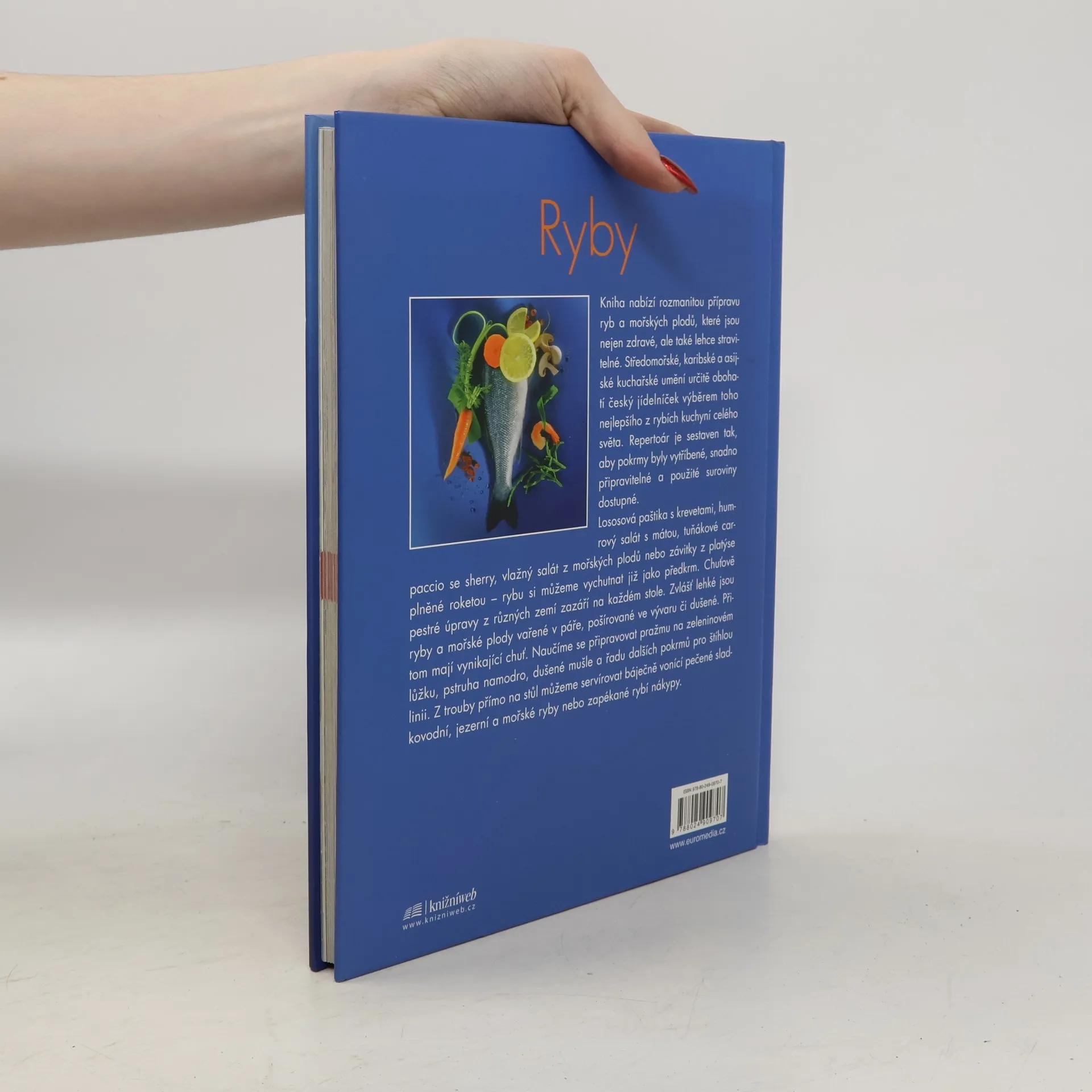Mezinárodní kuchyně nabízí rozmanitou přípravu ryb a mořských plodů. Středomořské, karibské a asijské způsoby přípravy obohatí český jídelníček výběrem toho nejlepšího z rybích kuchyní celého světa. Lososová paštika s krevetami, humrový salát s mátou, tuňákové carpaccio se sherry, vlažný salát z mořských plodů nebo závitky z platýse plněné roketou - rybu si můžeme vychutnat již jako předkrm. Chuťově pestré úpravy z různých zemí zazáří na každém stole. Přeloženo z německého originálu.
