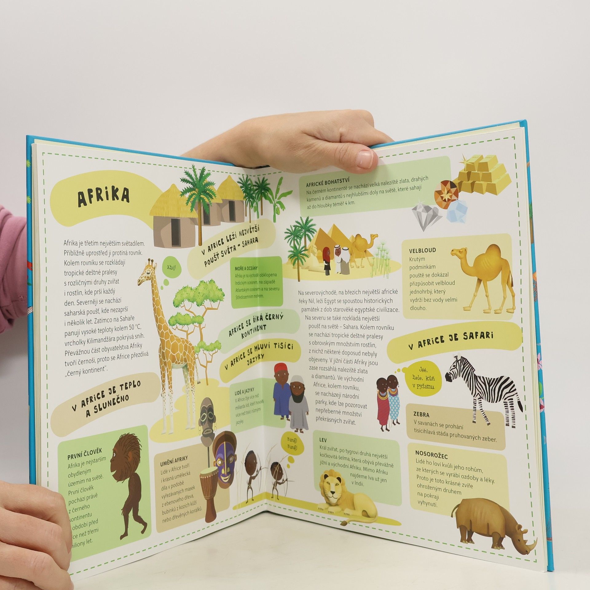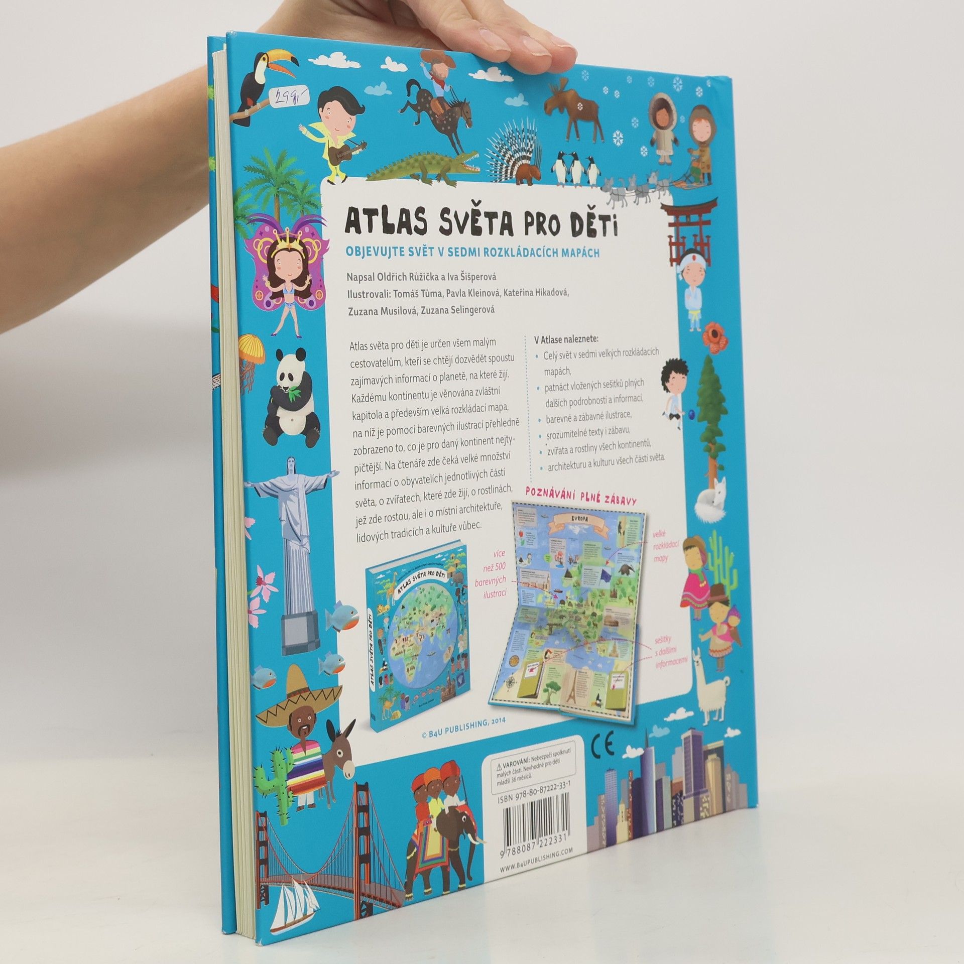 Atlas světa pro děti je určen všem malým cestovatelům, kteří se chtějí dozvědět spoustu zajímavých informací o planetě, na které žijí. Každému kontinentu je věnována zvláštní kapitola a především velká rozkládací mapa, na níž je pomoci barevných ilustrací přehledně zobrazeno to, co je pro daný kontinent nejtypičtější. Na čtenáře zde čeká velké množství informací o obyvatelích jednotlivých částí světa, o zvířatech, které zde žijí, o rostlinách, jež zde rostou, ale i o místní architektuře, lidových tradicích a kultuře vůbec. V Atlase naleznete celý svět v sedmi velkých rozkládacích mapách, patnáct vložených sešitků plných dalších podrobností a informací, barevné a zábavné ilustrace, srozumitelné texty i zábavu, zvířata a rostliny všech kontinentů, architekturu a kulturu všech částí světa.