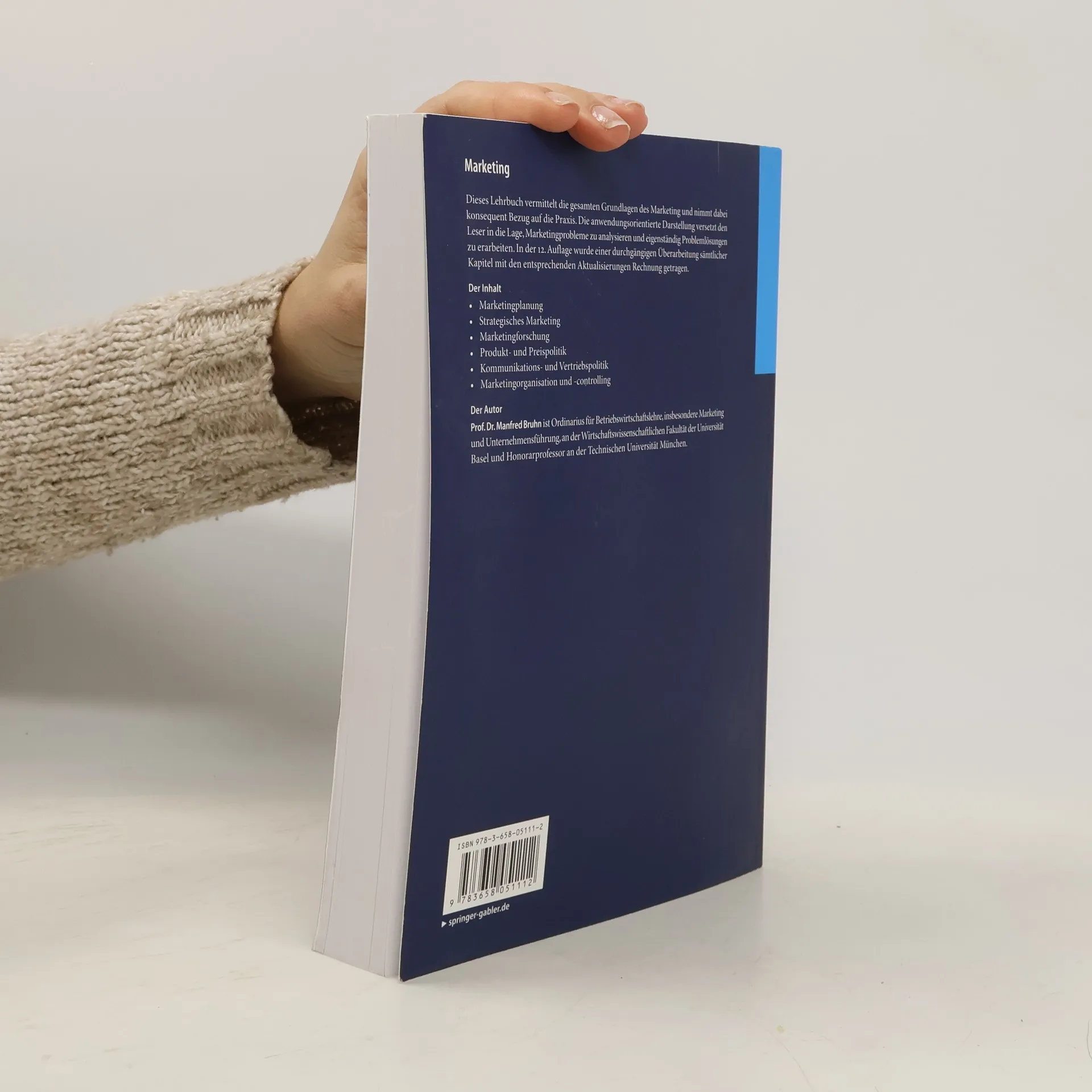 Dieses Lehrbuch vermittelt die gesamten Grundlagen des Marketing und nimmt dabei konsequent Bezug auf die Praxis. Die anwendungsorientierte Darstellung versetzt den Leser in die Lage, Marketingprobleme zu analysieren und eigenständig Problemlösungen zu erarbeiten. In der 12. Auflage wurde einer durchgängigen Überarbeitung sämtlicher Kapitel mit den entsprechenden Aktualisierungen Rechnung getragen. „Dieses einführende Werk des Baseler Marketing-Professors Manfred Bruhn [ermöglicht] dem Studienanfänger einen ausgezeichneten ersten Überblick über die zentralen Facetten dieses zentralen Wissensgebietes der Betriebswirtschaftslehre. [...] Die perfekte Einführung für den Anfänger.“ STUDIUM - Buchmagazin für Studierende.